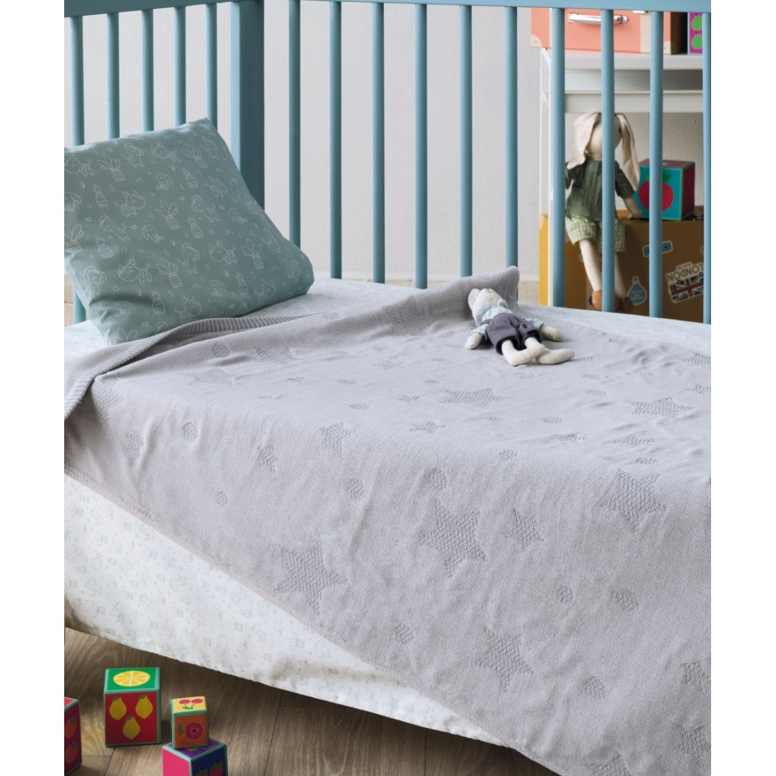 Βαμβακερή ματλασέ βρεφική κουβέρτα με ιδιαίτερα απαλή και αφράτη αίσθηση. Το ματλασέ είναι ύφασμα που δημιουργείται με την τεχνολογία πλοκής διπλών υφασμάτων που τα νήματα πλέκονται και σχηματίζουν ένα πικέ ανάγλυφο σχέδιο. Το ματλασέ φαίνεται σαν να έχει