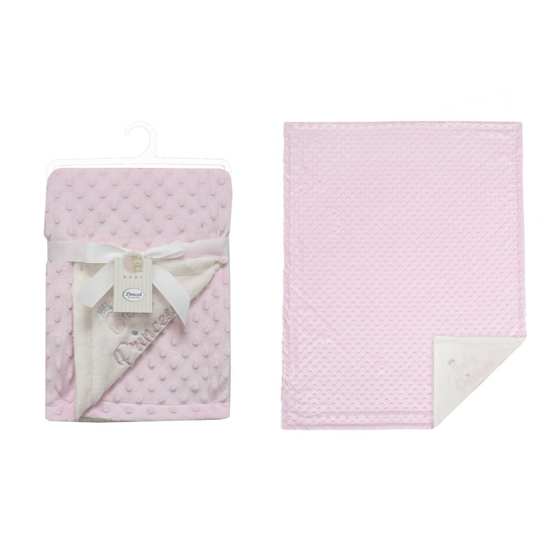 Κουβερτούλα διπλής όψεως με ανάγλυφο Bubble μοτίβο στην πάνω πλευρά και κέντημα &quotBaby Princess&quot στην κάτω. βάρους 420 gr/m² και διαστάσεων 75X100 cm. Είναι κατασκευασμένη από 100% Polyester Minky ύφασμα βάρους 220 gr/m² στην πάνω πλευρά και μονόχρωμo Flannel 200 gr/m² της ίδιας σύνθεσης στην κάτω. Η στρώση από Minky ύφασμα καθιστά την κουβερτούλα εξαιρετικά απαλή και ανθεκτική και σε συνδυασμό με την στρώση από flannel δημιουργείται μία κουβέρτα που προσφέρει βελούδινη υφή και ζεστασιά. ιδανική για την αγκαλιά. την κούνια και την βόλτα του μωρού σας. ακόμα και τους πιο κρύους μήνες του χειμώνα. Συσκευασία κορδελίτσα με καρτελάκι και κρεμάστρα. Η κουβέρτα είναι ελεγμένη για επιβλαβείς ουσίες με το παγκοσμίως αναγνωρισμένο πιστοποιητικό OEKO-TEX® Standard 100.