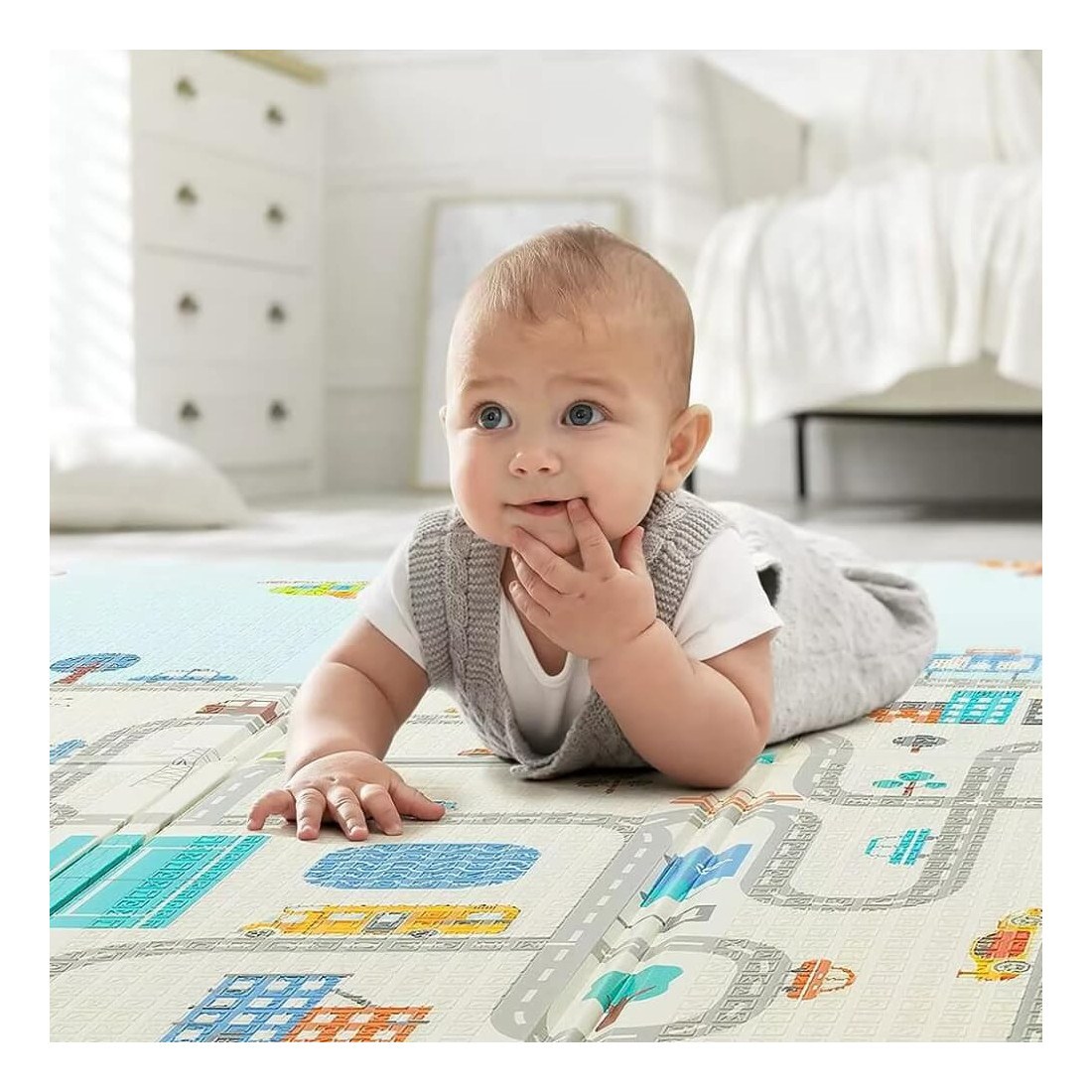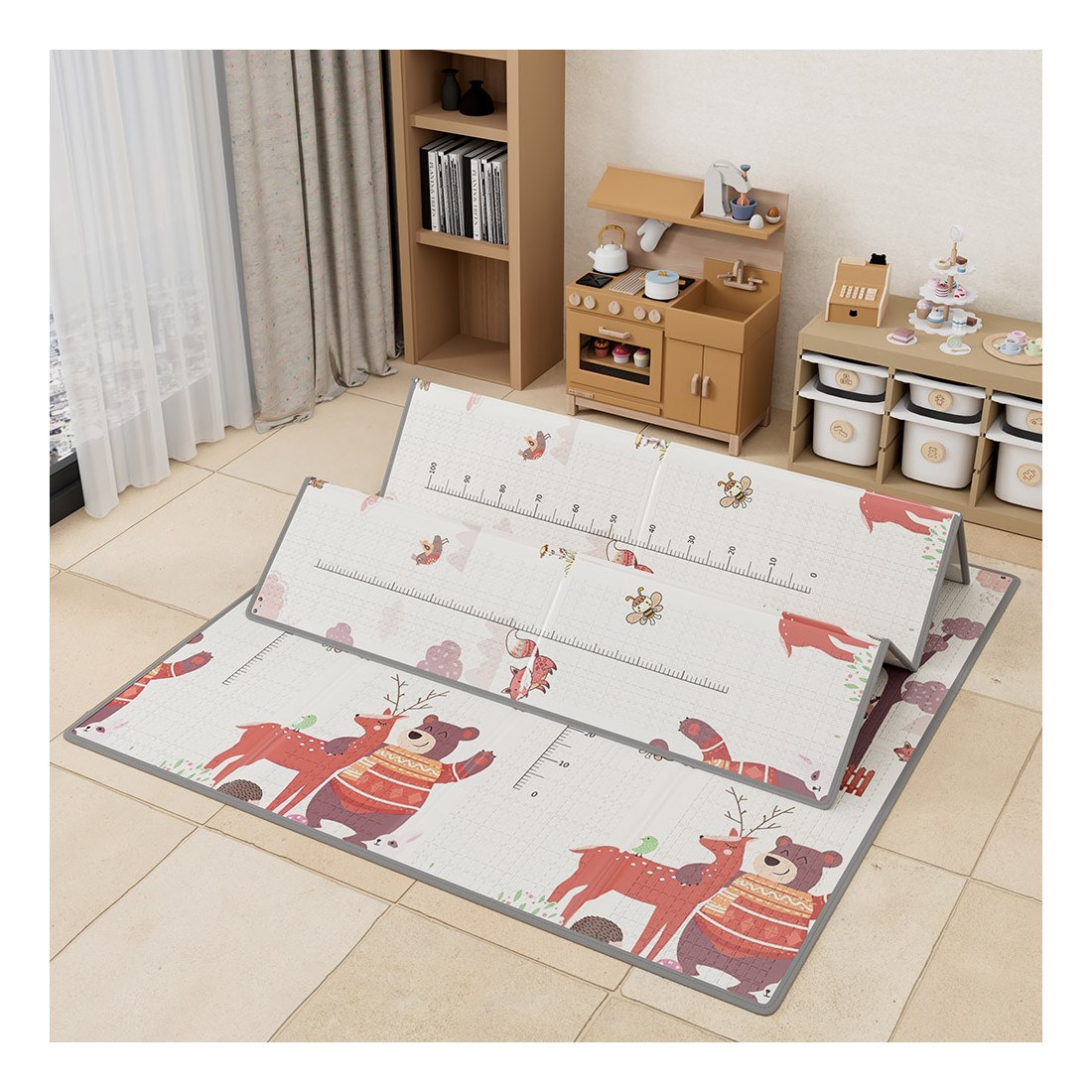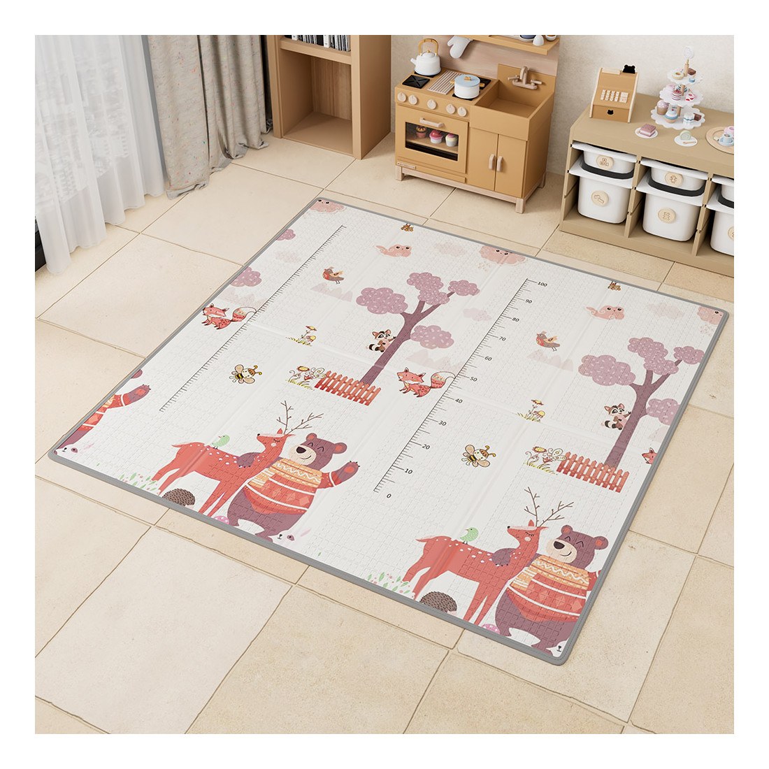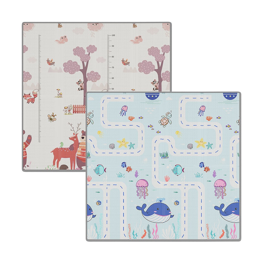 -Κάθε πλευρά του χαλιού έχει διαφορετική παράσταση με χαριτωμένα μοτίβα και ελκυστικά χρώματα που θα λατρέψει το παιδί σας.
