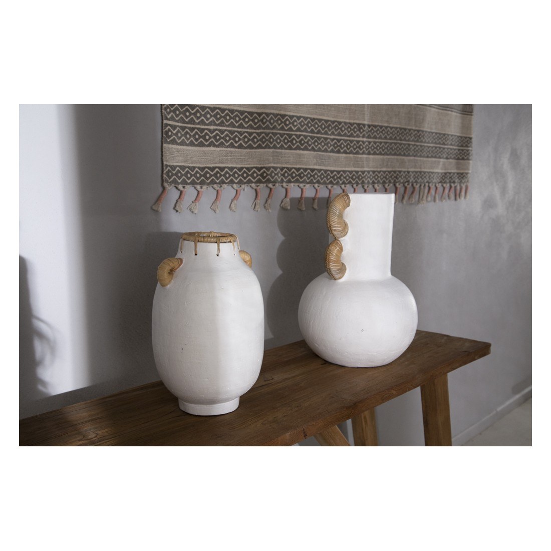 Διακοσμητικό Βάζο Usiris White (21x35cm) με χερούλια από πηλό σε λευκό χρώμα. Συσκευασία 1 δέμα ανά τεμάχιο.