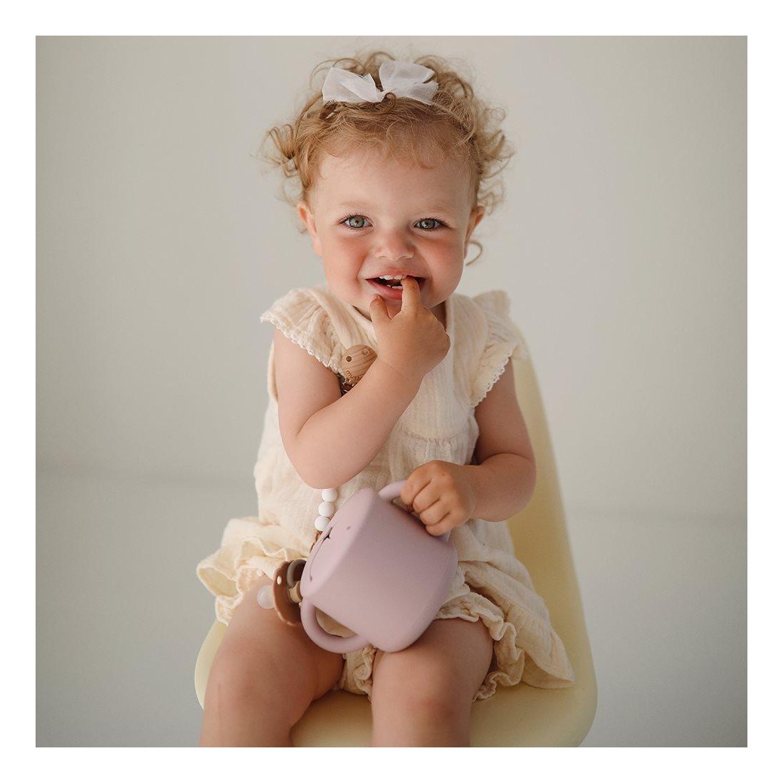 Ένα κυπελάκι σιλικόνης το οποίο είναι απαραίτητο αξεσουάρ για κάθε έξοδό σας. Είναι ανθεκτικό στις διαρροές και διαθέτει βολικές λαβές στο πλάι, ώστε τα παιδιά να το κρατάνε με απόλυτη ευκολία. Το μαλακό άνοιγμα στο πάνω μέρος διευκολύνει το μικρό σας να βγάζει τα σνακ, ενώ αυτά μένουν ασφαλή στο εσωτερικό. Υλικό: Σιλικόνη κατάλληλη για τρόφιμα Συνιστώμενη ηλικία: 6 μηνών και άνω Διαστάσεις: Υ: 8,5 cm × Μ: 9 cm × Π: 14 cm | 117 g Διαστάσεις με τη συσκευασία: Υ: 14 cm × Μ: 9 cm × Π: 14 cm | 129 g Μέγιστη χωρητικότητα: 400 ml Πρότυπο ασφαλείας: EN14372 Πλένεται με ζεστό νερό και ήπιο σαπούνι ή τοποθετείται για πλύσιμο στο πάνω ράφι του πλυντηρίου πιάτων. Αποφύγετε τα ισχυρά ή αρωματισμένα καθαριστικά. Συνιστάται το πλύσιμο στο χέρι για τη βέλτιστη συντήρηση.