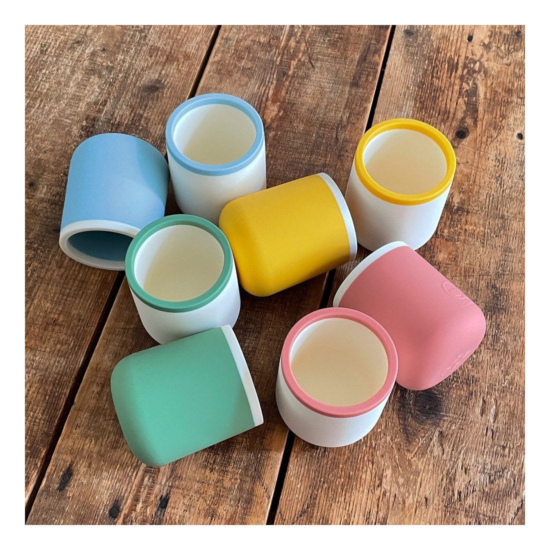 Ένα όμορφο και πρακτικό σετ από 2 παιδικά ποτηράκια σιλικόνης της Smikkels. Τα ποτηράκια είναι κατασκευασμένα από εύκαμπτη, μαλακή σιλικόνη. Πρόκειται για ένα ιδανικό δώρο για μωρά και νήπια που εξασκούνται στις πρώτες τους γουλιές χρησιμοποιώντας ανοιχτό ποτήρι. Το μέγεθος των ποτηριών είναι ιδανικό για όλα τα μικρά χεράκια, ενώ η μαλακή σιλικόνη τα εμποδίζει στα να γλιστρήσουν από τα δάχτυλα τους. Επίσης, η βάση του ποτηριού είναι ενισχυσμένη με έξτρα σιλικόνη, κρατώντας το σταθερό στο τραπέζι. Το υλικό κατασκευής είναι φιλικό προς τα ευαίσθητα ούλα, και κάνει τη χρήση των ποτηριών άνετη ακόμα και στην εποχή που τα μωρά εμφανίζουν τα πρώτα τους δόντια. Τα ποτηράκια μπορούν να χρησιμοποιηθούν τόσο για ζεστά όσο και για κρύα ροφήματα.