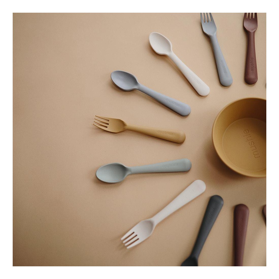 Κάντε κάθε γεύμα σας πιο διασκεδαστικό και εύκολο για τα μικρά παιδιά με το σετ κουτάλι και πιρούνι της Mushie!