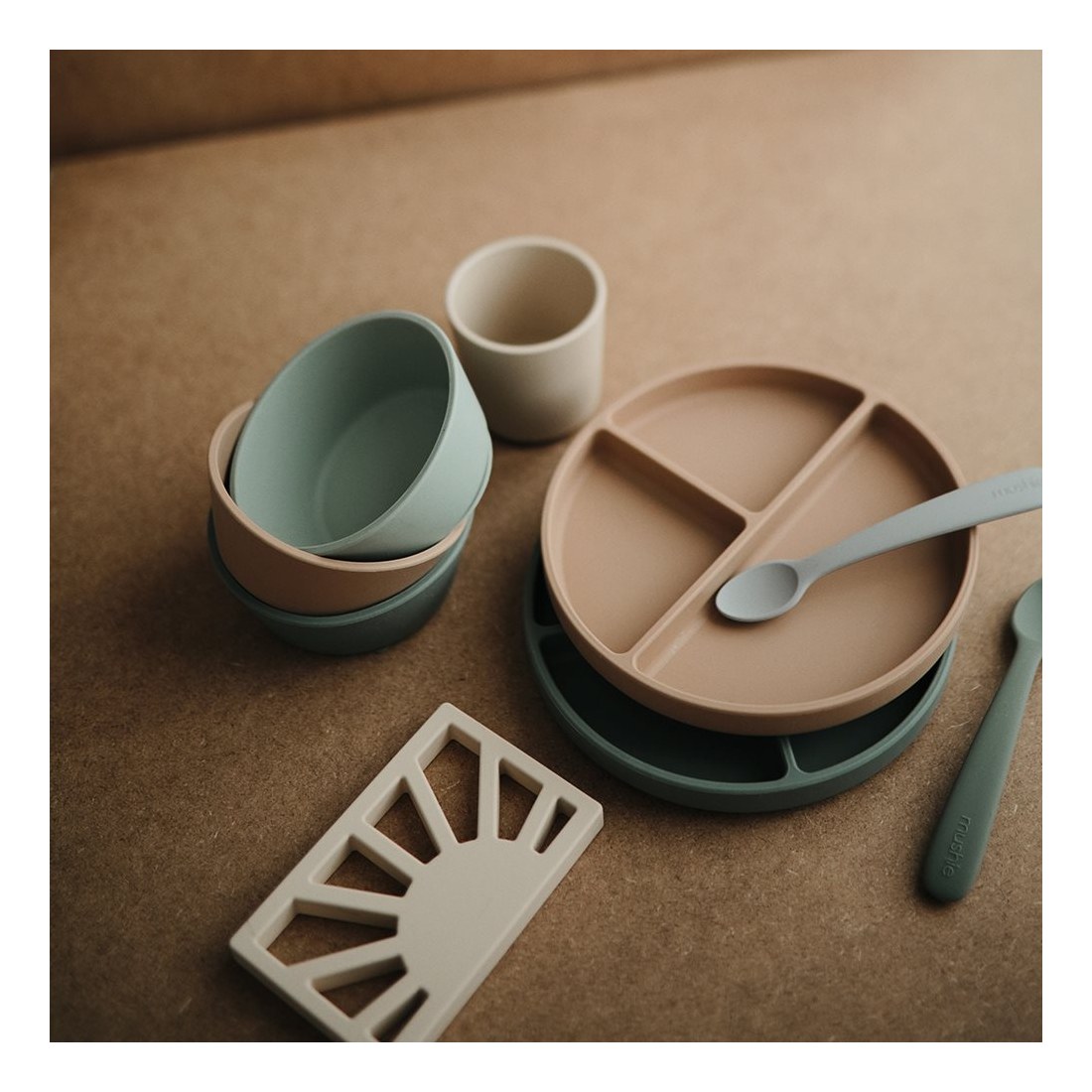 Σετ 2 Μακριά Κουταλάκια Σιλικόνης Blush/Shifting Sand - Mushie