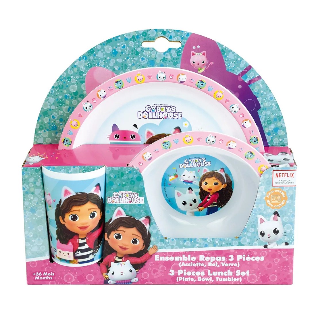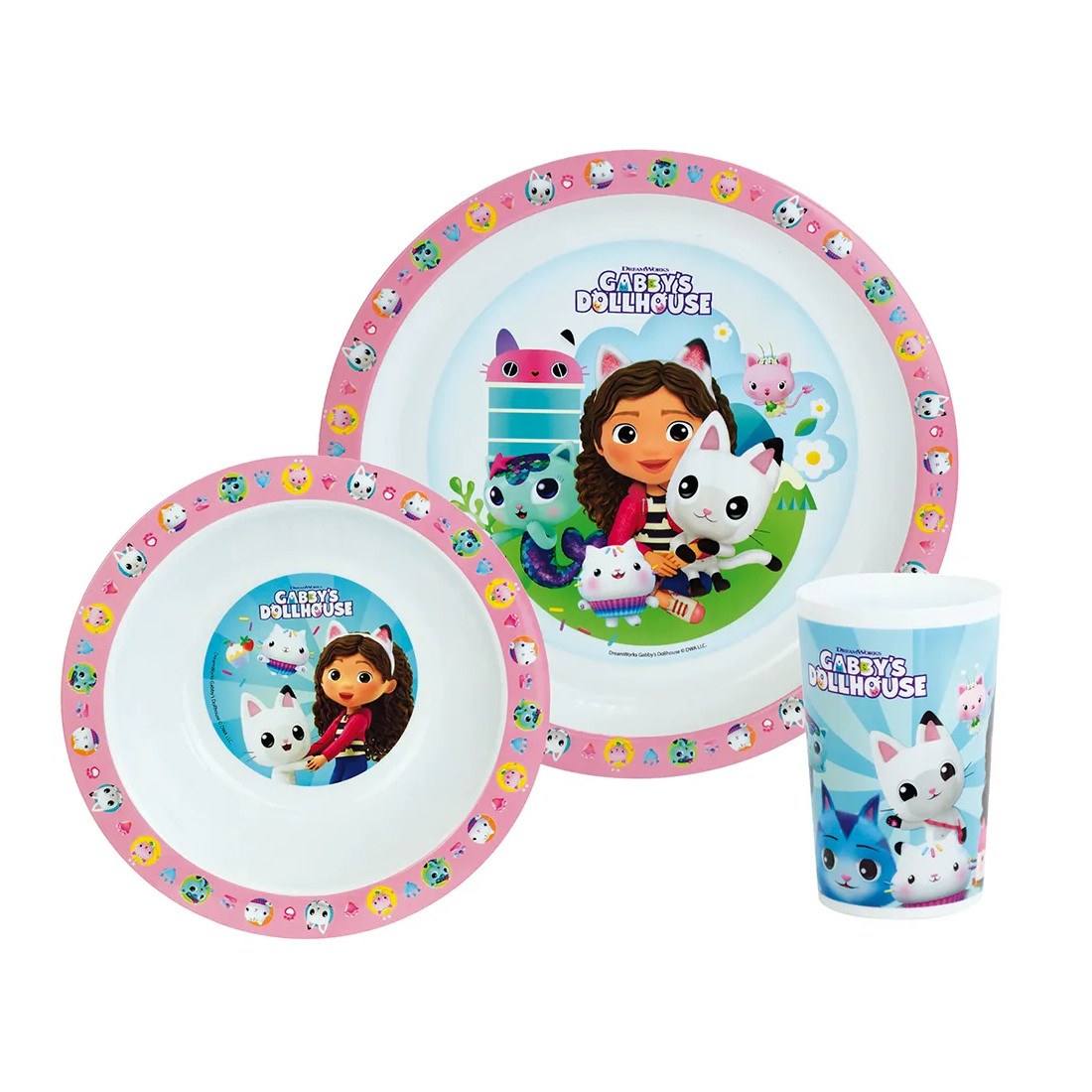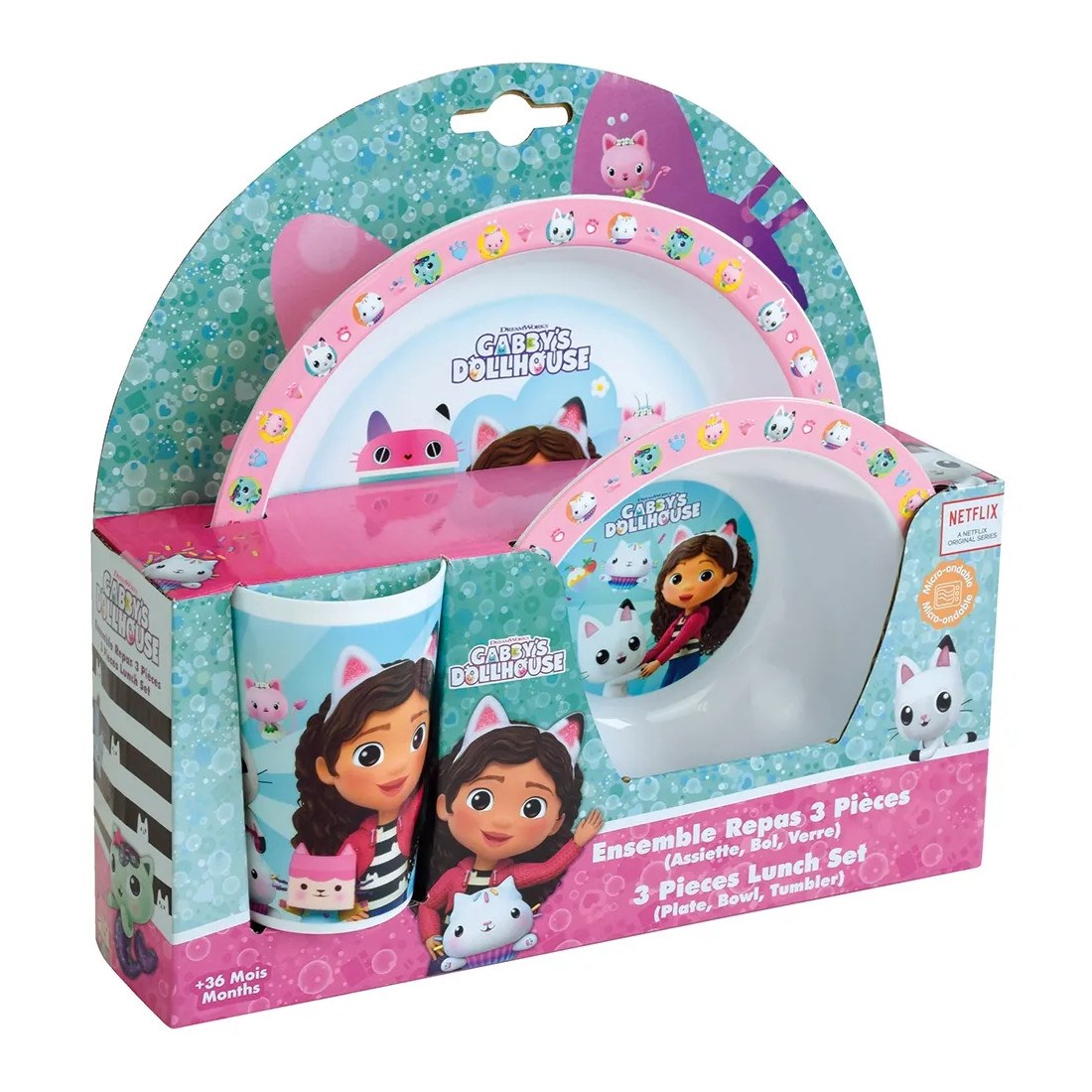 σερβίτσιο φαγητού. Η Gabby's Dollhouse παιδικό σερβίτσιο φαγητού κάνει διασκεδαστικό κάθε γεύμα των παιδιών σας! Το Gabby's Dollhouse παιδικό σερβίτσιο φαγητού περιλαμβάνει πιάτο, μπολ, ποτήρι και είναι κατασκευασμένο από πολυπροπυλένιο, κατάλληλο για παιδιά ηλικίας άνω των 6 μηνών.
