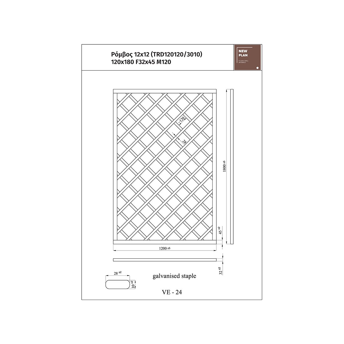 - Προτείνεται τοποθέτηση με τα ξύλινα δοκάρια 7x7εκ. ή 9x9εκ.