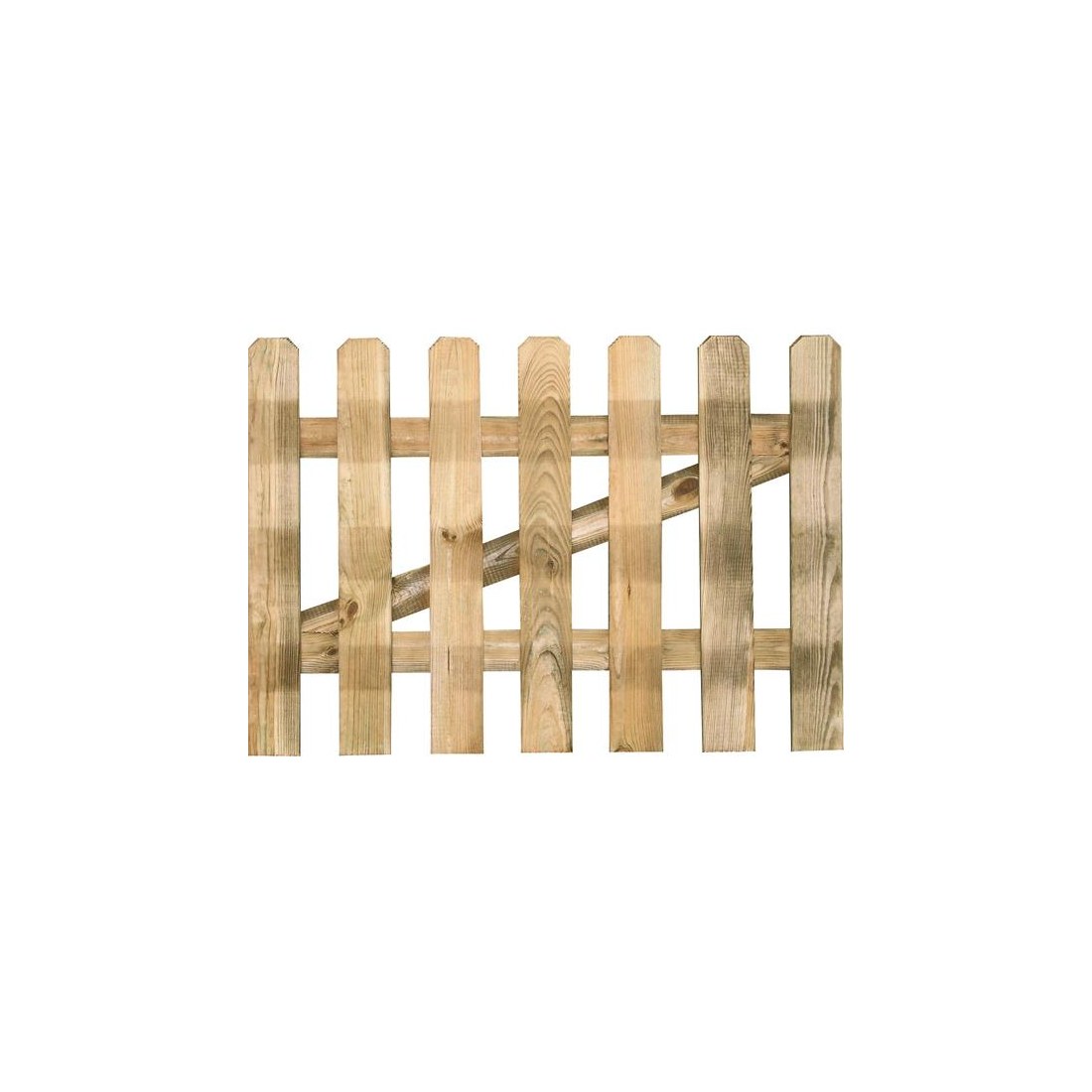 Πόρτα φράχτη από εμποτισμένη ξυλεία, αποτελούμενος από 7 λείες τάβλες πλάτους 9cm και πάχους 2cm τοποθετημένες κάθετα. Διατίθεται μαζί με τους μεντεσέδες και συνδυάζεται με τον λείο φράχτη με 11 ξύλα.