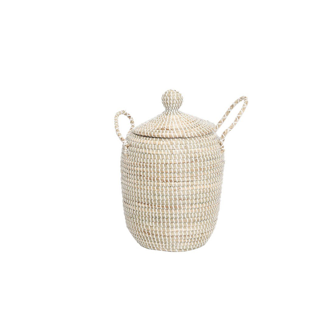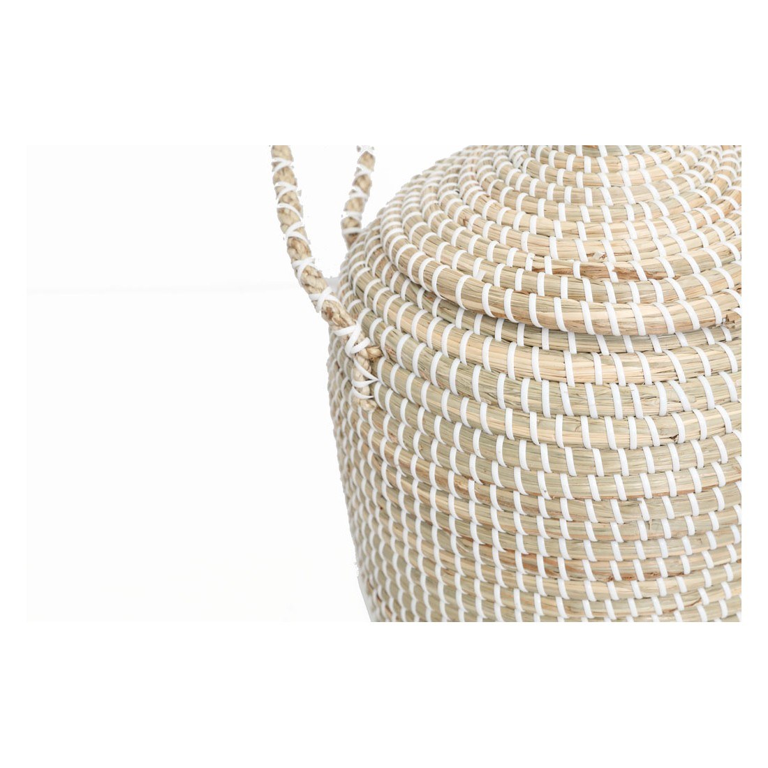 Καλάθι Tortilla με καπάκι και χερούλια M (31x46cm) από πλεγμένο seagrass σε φυσικό χρώμα και ακρυλικό νήμα σε λευκό. Συσκευασία 1 δέμα ανα τεμάχιο.