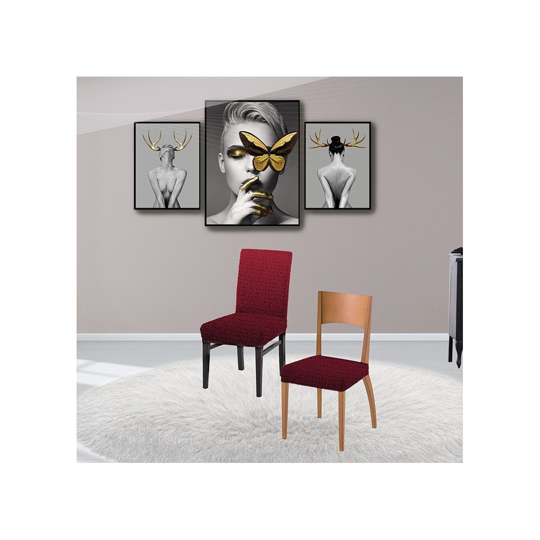 Σετ Ελαστικά Καλύμματα Καρέκλας 2 Τεμαχίων Sb Home Sabrina Bordo που εφαρμόζουν ιδανικά στο κάθισμα-πλάτη της καρέκλας σας, προστατεύοντας της και χαρίζοντας ένα όμορφο αποτέλεσμα.