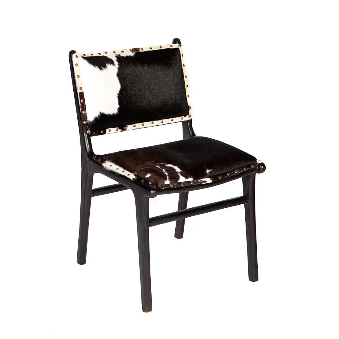 Supergreens Καρέκλα Τραπεζαρίας Δερμάτινη Teak Αγελάδα Ασπρόμαυρη 66x55x97 εκ.