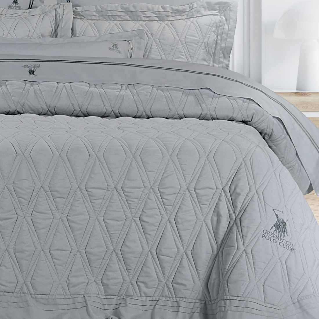 Κουβερλί σετ Greenwich Polo Club της σειράς Premium από 100% microfibre. Αυτό που χαρακτηρίζει την συλλογή είναι οι απαλές αποχρώσεις, τα διακριτικά σχέδια και το διαχρονικό ύφος. Το σετ αποτελείται από ένα κουβερλί σε διάσταση 220Χ240εκ και 2 μαξιλαροθήκες σε διάσταση 50Χ70+8εκ με περιμετρική ραφή oxford.