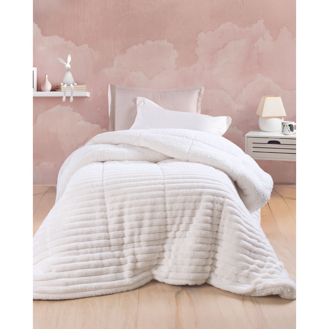 Κουβερτοπάπλωμα υπέρδιπλο 220X240 σε μπεζ χρώμα. με απίστευτα απαλή rabbit eco fur από την πάνω μεριά και από την κάτω flannel fleece στο ίδιο χρώμα με την επιφάνεια. Πρόκειται για το πιο ζεστό κουβερτοπάπλωμα της συλλογής μας και αποτελεί ιδανικό σκέπασμα για τους χειμερινούς μήνες. ΑΝΩ ΟΨΗ: Jacquard Rabbit Eco Fur (400gr/m2) ΚΑΤΩ ΟΨΗ:Flannel Fleece Ιδίου Χρώματος (180gr/m2) ΓΕΜΙΣΜΑ: Polyfill (150gr/m2) Bάρος: 730gr/m2