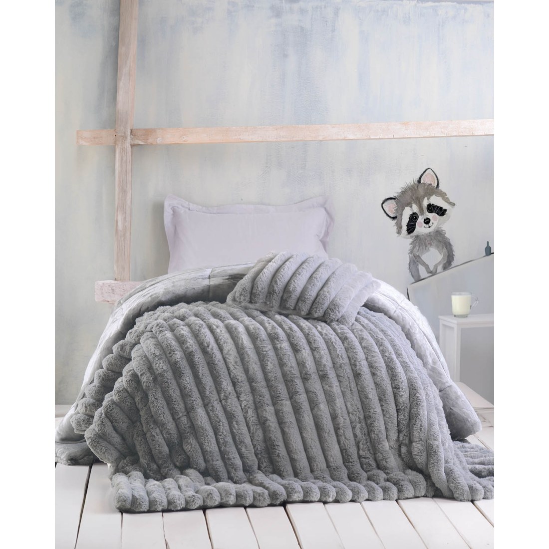 Κουβερτοπάπλωμα ημίδιπλο 160X220 σε γκρι χρώμα. με απίστευτα απαλή rabbit eco fur από την πάνω μεριά και από την κάτω flannel fleece στο ίδιο χρώμα με την επιφάνεια. Πρόκειται για το πιο ζεστό κουβερτοπάπλωμα της συλλογής μας και αποτελεί ιδανικό σκέπασμα για τους χειμερινούς μήνες. ΑΝΩ ΟΨΗ: Jacquard Rabbit Eco Fur (430gr/m2) ΚΑΤΩ ΟΨΗ:Flannel Fleece Ιδίου Χρώματος (180gr/m2) ΓΕΜΙΣΜΑ: Polyfill (120gr/m2) Bάρος: 730gr/m2