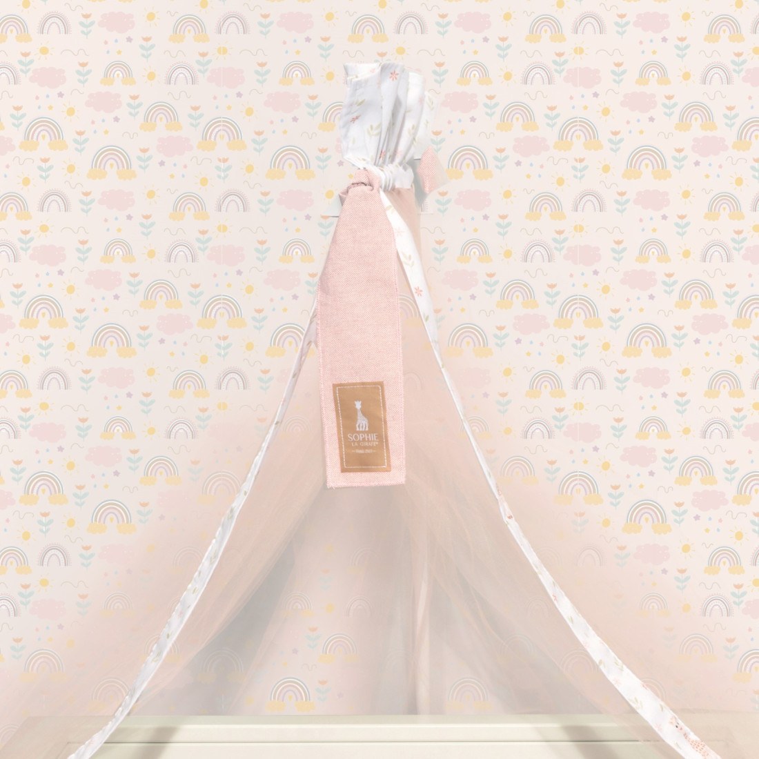 Κουνουπιέρα 180χ500 με χρωματιστό τούλι. Ύφασμα εμπριμέ 100% βαμβάκι 144 κλωστών. Συσκευασία σακουλάκι pvc. Πλένεται στο χέρι. Ελληνικής ραφής.