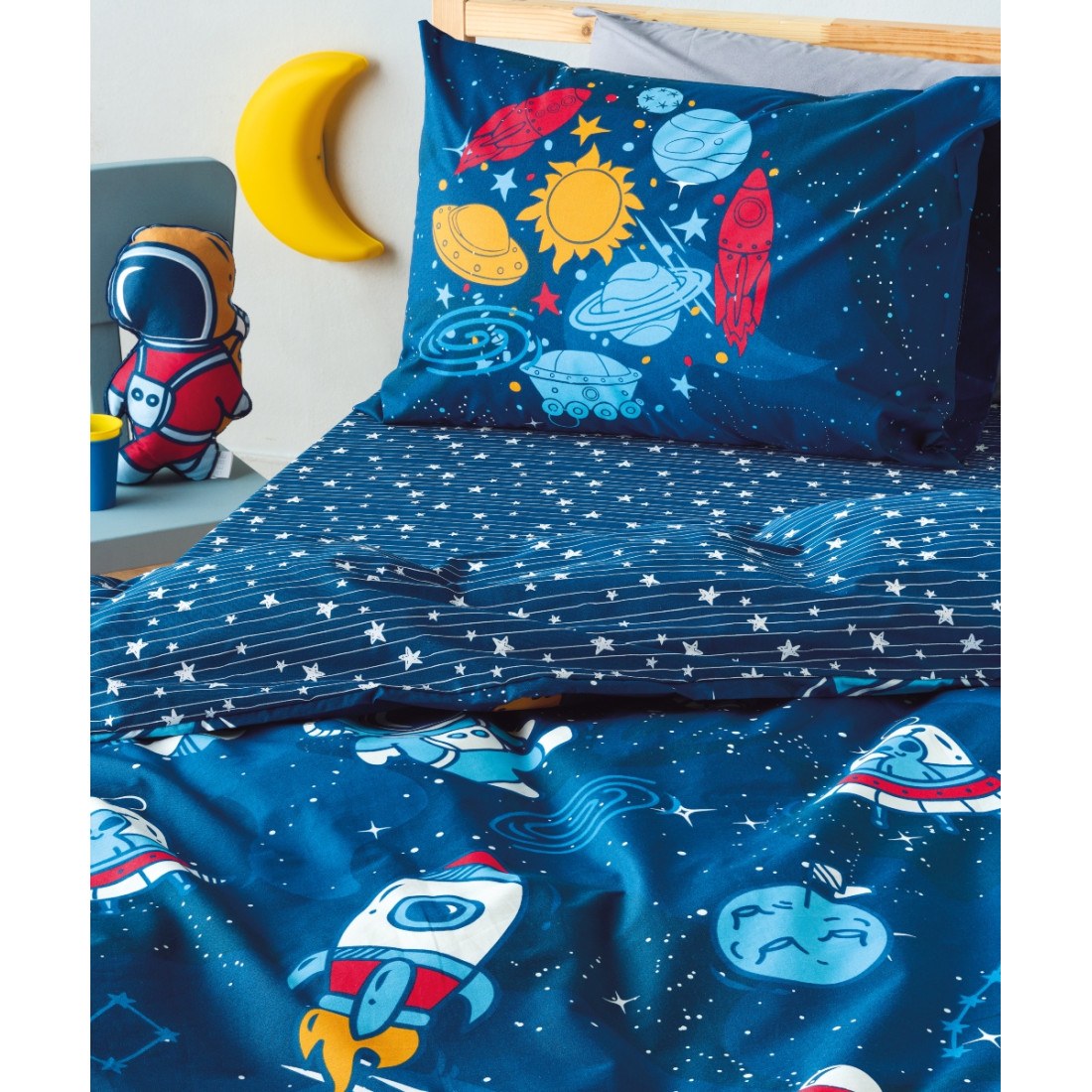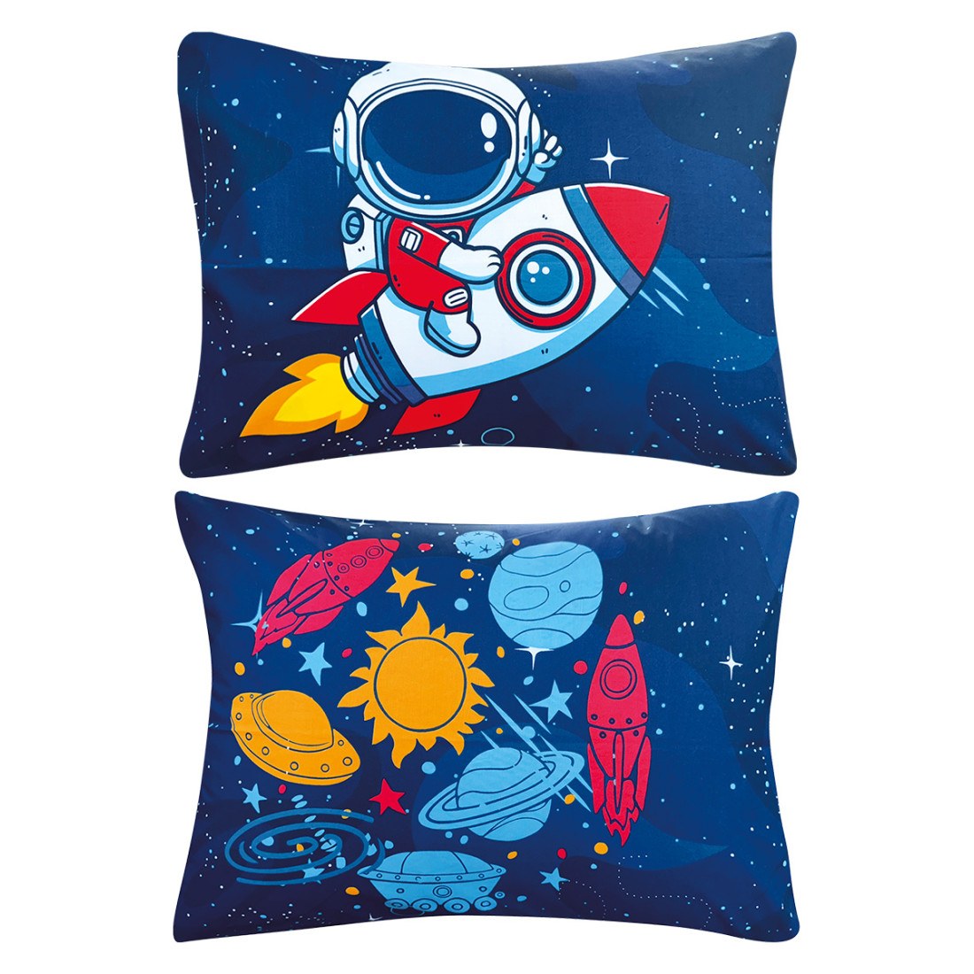 Μαξιλαροθήκες σετ 2 τεμαχίων κατασκευασμένες από 100% βαμβακερό ύφασμα 150 κλωστών (150 TC). Το ύφασμα είναι κατασκευασμένο με ειδική τεχνοτροπία (glow in the dark) που κάνει το σχέδιο να λάμπει και να ξεχωρίζει στο απόλυτο σκοτάδι. Ενδείκνυται Πλύσιμο στους 40°C.