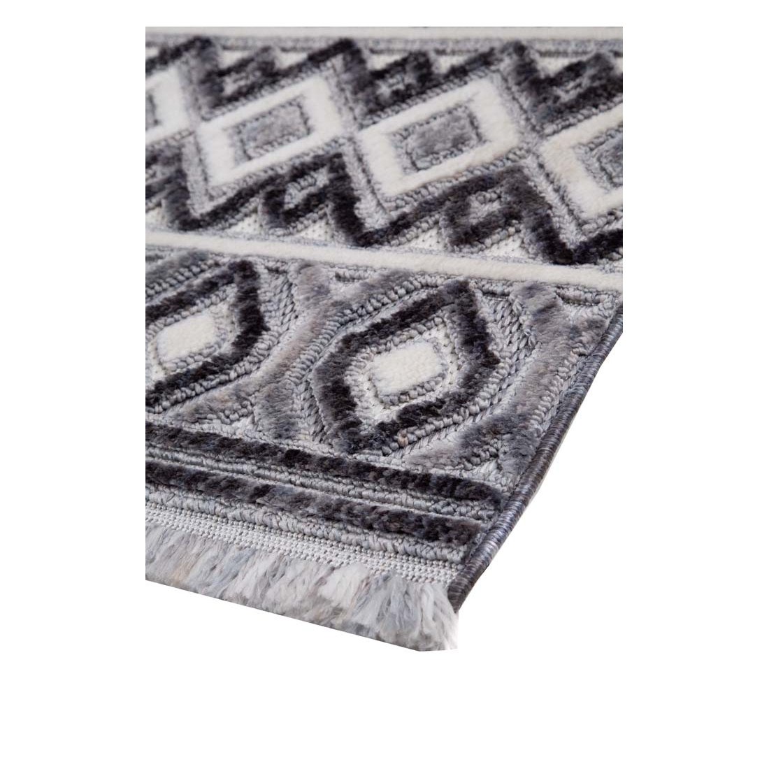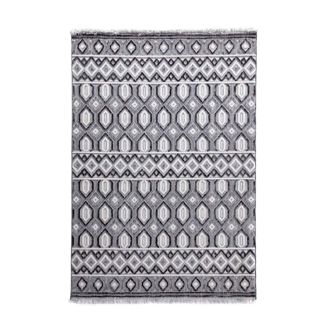 Μοντέρνα ανάγλυφα χαλιά τριών επιπέδων με ιδιαίτερη γυαλάδα στην επιφάνεια και μοναδικό κρόσσι. Σε λευκούς, ασημί και γκρι χρωματισμούς ανανεώνει το χώρο σας και αποτελεί ξεχωριστή πρόταση τόσο για το σαλόνι καθώς για την κρεβατοκάμαρά σας. Πρακτικό και εύκολο στο καθάρισμα.