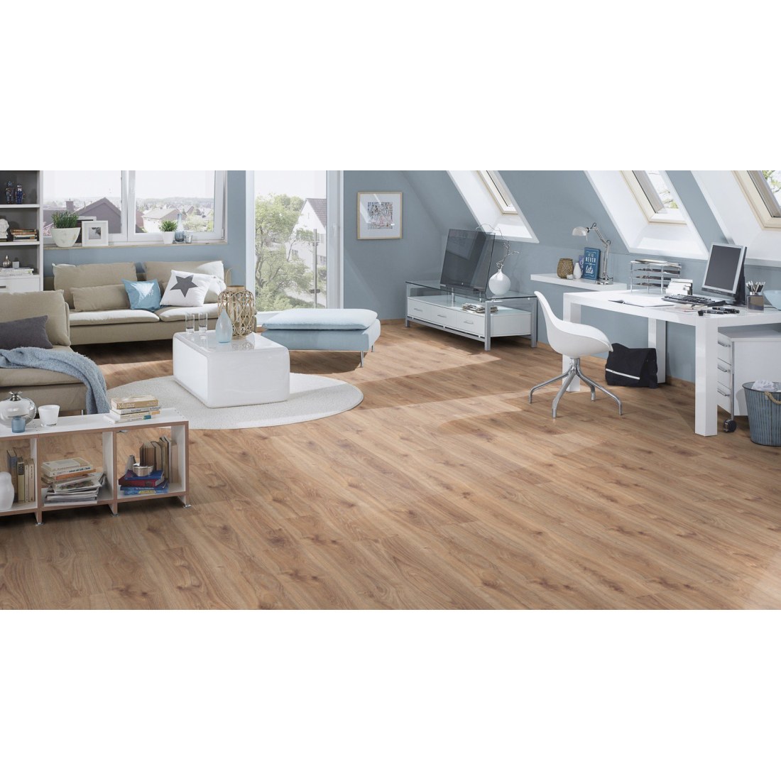 Τα όμορφα δωμάτια αξίζουν ένα όμορφο δάπεδο. Με το Castello από την Krono Original®, μπορούν να υλοποιηθούν ακόμη και οι πιο φιλόδοξες σχεδιαστικές σας έννοιες. Είναι γερμανικής προέλευσης, κλάσης AC4/32, αντιβακτηριδιακό, ιδιαίτερα απλό στην τοποθέτηση και σε πολύ καλη τιμή.