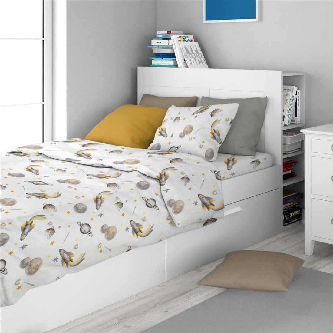 Σετ Παιδικά Σεντόνια Μονά 3 Τεμαχίων Dimcol Space Mission 183 160x240 White-Grey