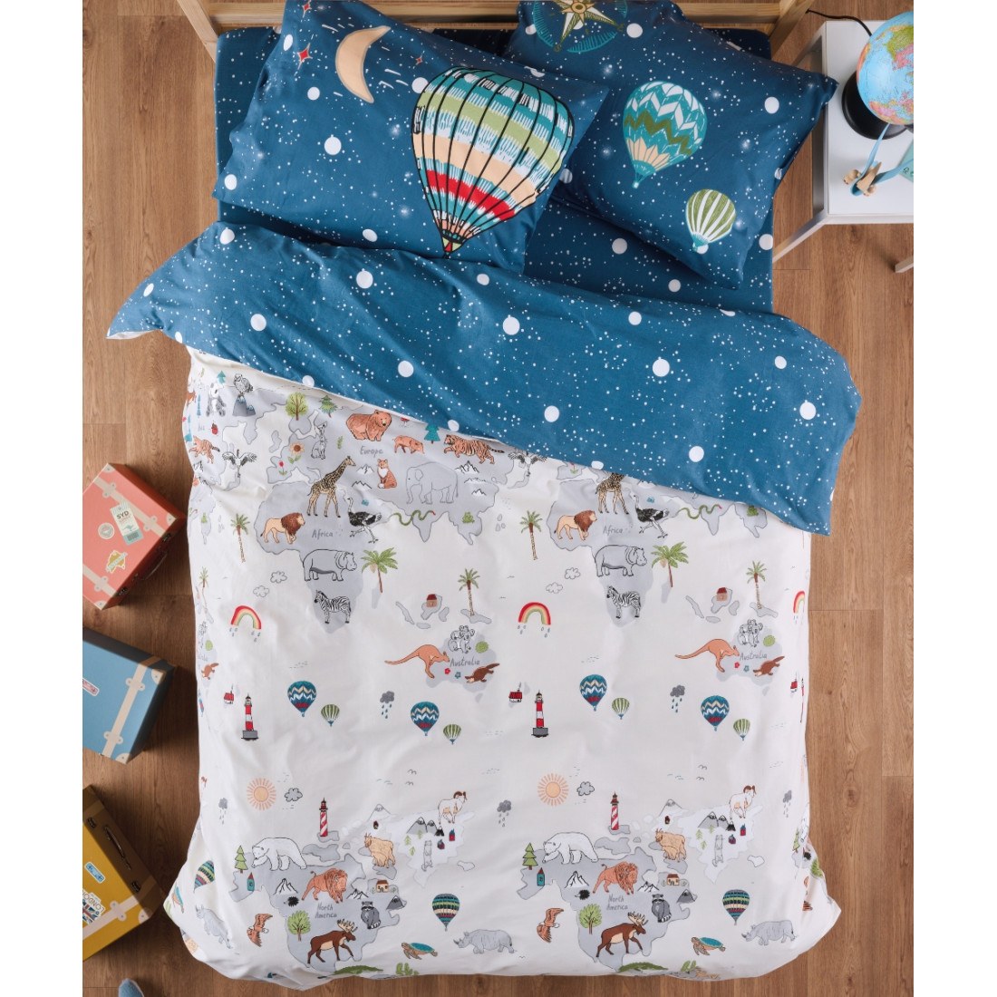 Σετ μονά σεντόνια 3 τεμαχίων (κατωσέντονο, πανωσέντονο και 1 μαξιλαροθήκη), κατασκευασμένα από ύφασμα με 100% βαμβακερά νήματα πυκνότητας 150 κλωστών (150 TC), με λείο φινίρισμα και απαλή αίσθηση. Ύφασμα πολύ μαλακό, ιδανικό για καθημερινή χρήση. Ενδείκνυται Πλύσιμο στους 40°C.