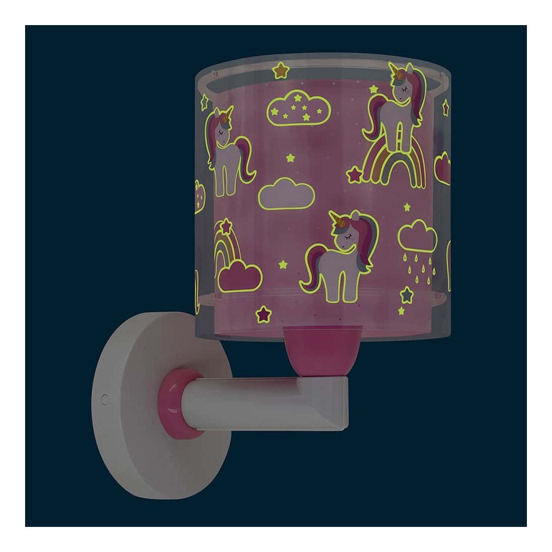 Παιδικό φωτιστικό απλίκα τοίχου με θέμα τους μονόκερους, ιδανικά σχεδιασμένο για γενικό ή συμπληρωματικό φωτισμό. Φωτίζει και προσθέτει διασκεδαστικό χαρακτήρα και χαρούμενο άγγιγμα σε κάθε παιδικό δωμάτιο.