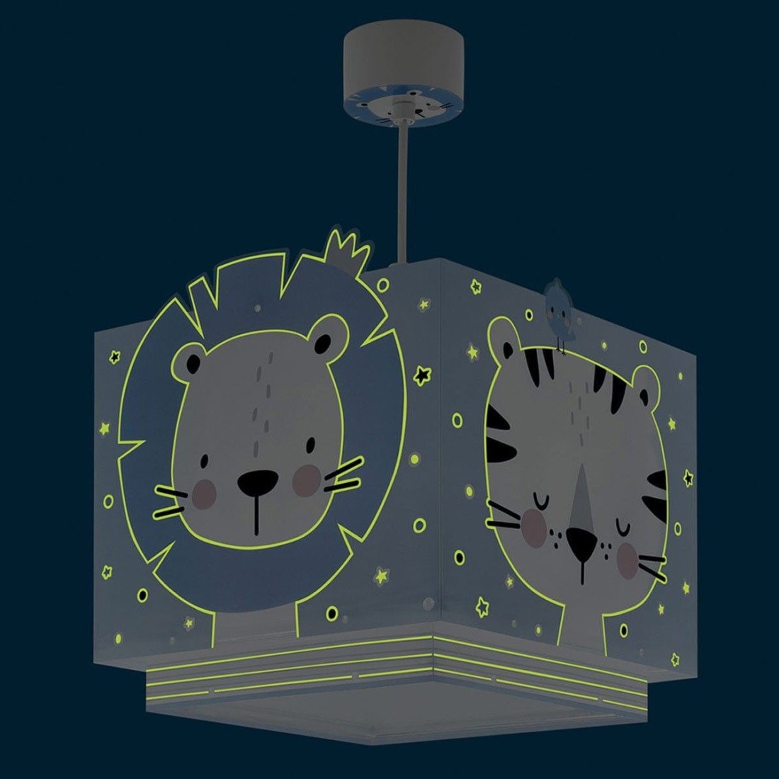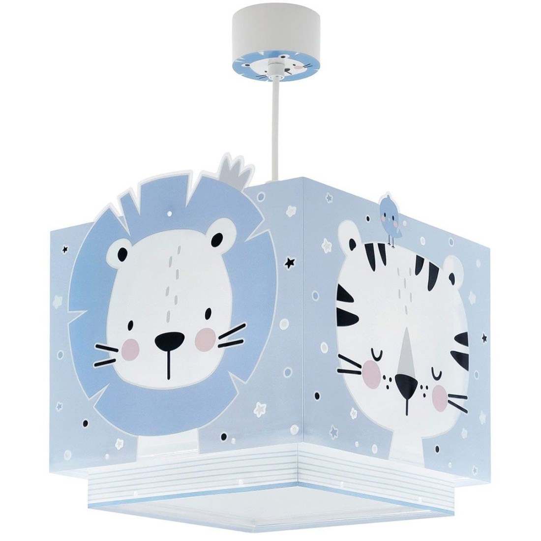 Παιδικό φωτιστικό οροφής της εταιρείας Ango σε γαλάζιο χρώμα με σχέδιο ζωάκια. Είναι σχεδιασμένο για γενικό φωτισμό που παρέχει ομοιόμορφο και άπλετο φωτισμό. Έχει φωσφορίζοντα μέρη στο σκοτάδι. Απόλυτα ασφαλές ώστε τα παιδιά να μπορούν να μελετήσουν, να παίξουν και να κοιμηθούν. Συνθετικό υλικό αντοχής (πολυπροπυλένιο, συνθετικά / πλαστικά μέρη). Διπλού τοιχώματος με διάφανο το εξωτερικό του για μέγιστη φωτεινότητα. Κιτ ανάρτησης ρυθμιζόμενο έως 60εκ. ύψος κατά την εγκατάσταση (συμπεριλαμβάνεται). Διακοσμημένη ροζέτα κάλυψης σημείων σύνδεσης & στήριξης. Ανεξίτηλη εκτύπωση σε διάφανο υλικό που προσδίδει δισδιάστατο αποτέλεσμα. Παρέχεται διαχυτής φωτός για ομοιόμορφο φωτισμό. Ιδανικό για γενικό φωτισμό. Τύπος ντουί: 1 Χ E27 με θέση για έναν λαμπτήρα οικονομίας ισχύος έως 23W ή Led(δεν συμπεριλαμβάνεται). Τροφοδοσία ρεύματος 220V–240V. Κατασκευασμένο εξ ολοκλήρου στην Ευρώπη. Ασφάλεια με πιστοποιήσεις στους κανόνες ασφαλείας της ΕΕ. Ενεργειακής κλάσης Α++. Το Baby Jungle Blue φωτιστικό οροφής συμπληρώνει τα υπόλοιπα παιδικά φωτιστικά της συλλογής και είναι εξαιρετικά εύκολο στην εγκατάστασή του.