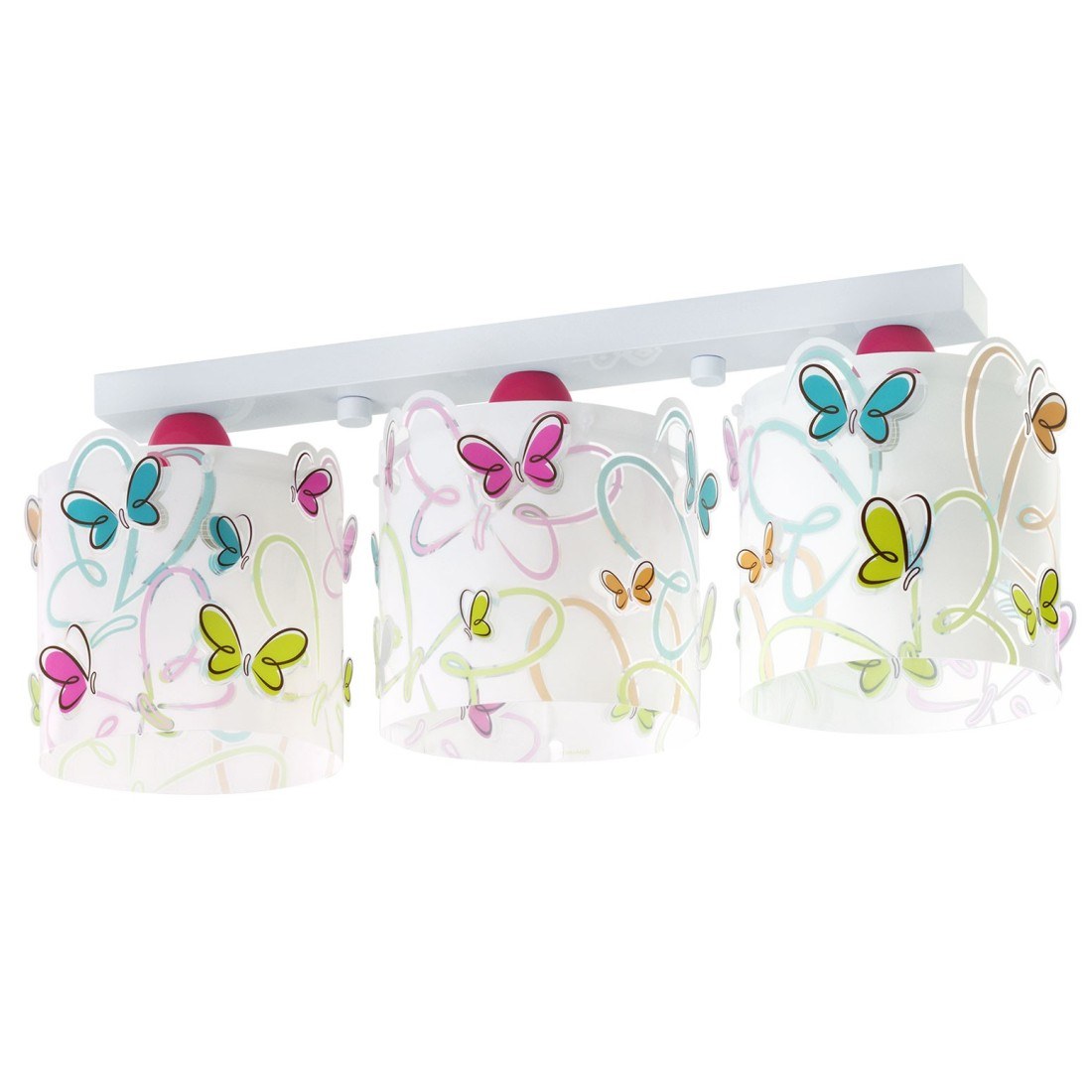 Το τρίφωτο παιδικό φωτιστικό οροφής με θέμα τις πεταλούδες προσφέρει άπλετο γενικό φωτισμό. Μονού τοιχώματος με πεταλούδες που εξέχουν. Πλαστικά, μεταλλικά μέρη & τοίχωμα πολυπροπυλενίου. Κιτ ανάρτησης σε ράγα με μεταλλική βάση στήριξης. Κατασκευασμένο εξ ολοκλήρου στην Ευρώπη. Το Butterfly τρίφωτο φωτιστικό οροφής συμπληρώνει τα υπόλοιπα παιδικά φωτιστικά της συλλογής.