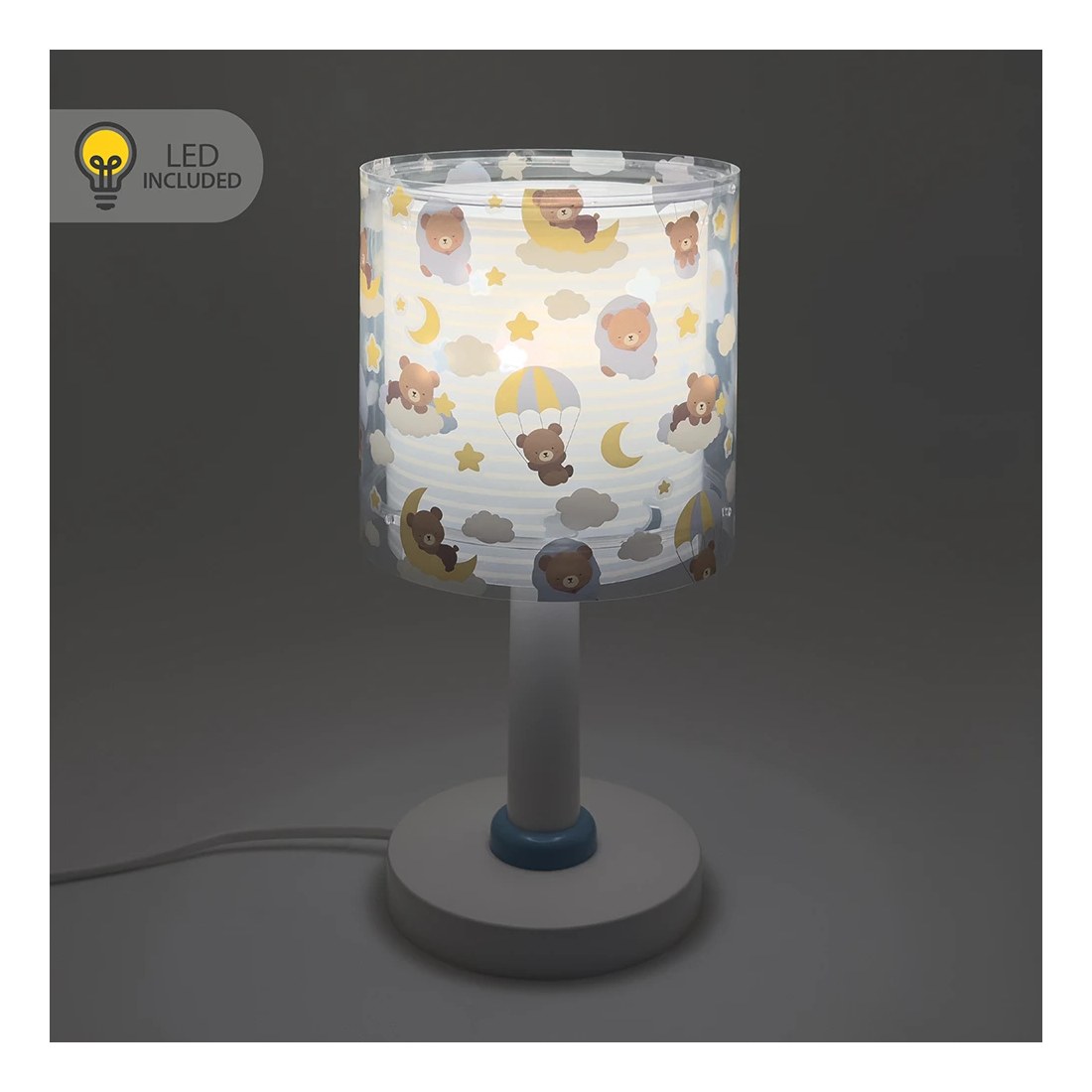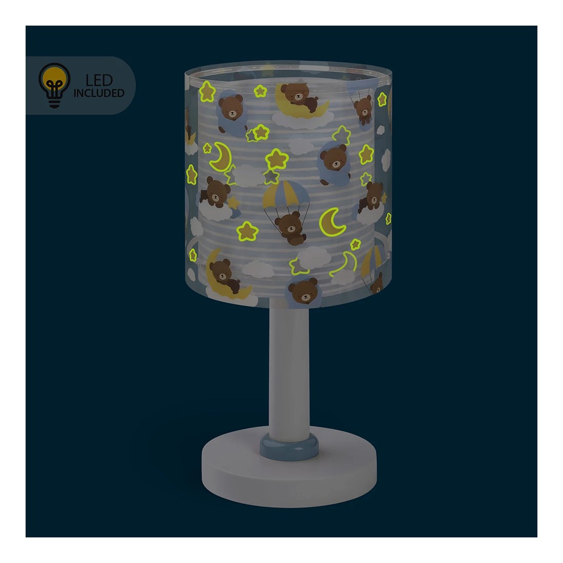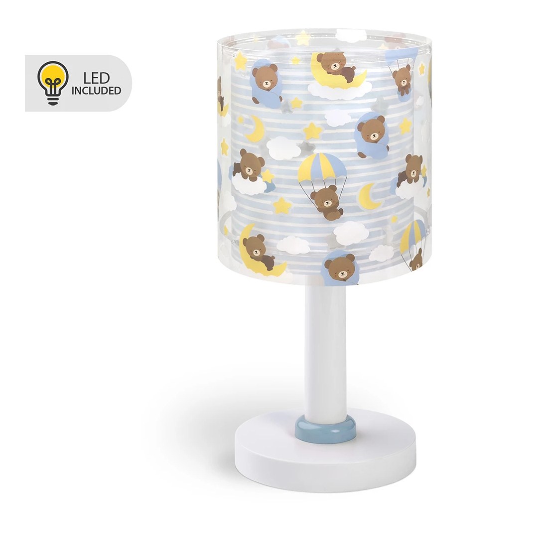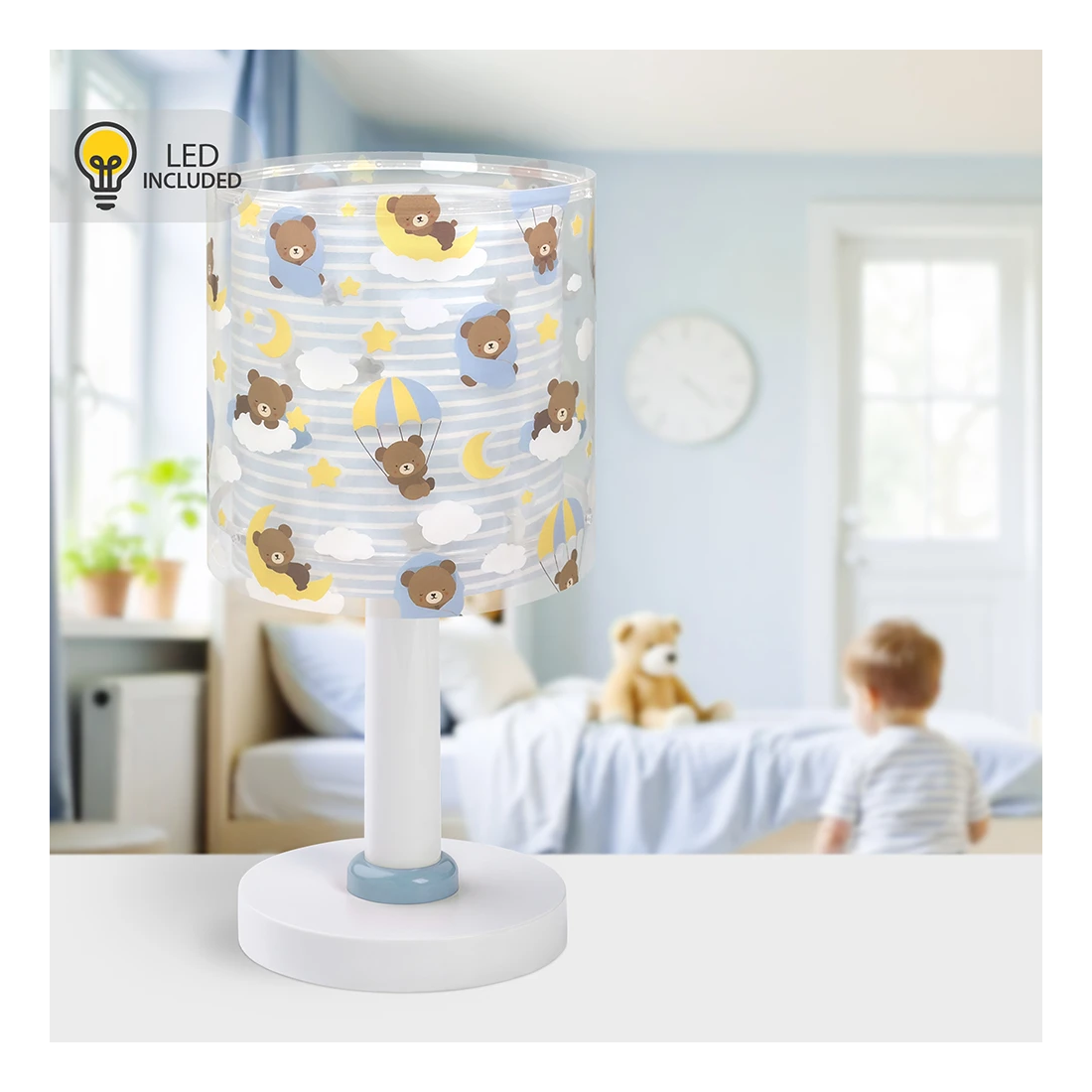 Τα αρκουδάκια του Baby Teddy παίζουν και ξεκουράζονται σε απαλά σύννεφα, συνοδεύοντας τις ήσυχες στιγμές των μικρών στο σπίτι. Αυτό το επιτραπέζιο φωτιστικό προσφέρει ζεστό, άνετο φως, ιδανικό για να διαβάζετε ιστορίες πριν τον ύπνο, να ονειρεύεστε ή να απολαμβάνετε το παιχνίδι. Κάθε αρκουδάκι, με τη δική του γοητεία και προσωπικότητα, μετατρέπει την καθημερινή ρουτίνα σε ζεστές στιγμές γεμάτες φαντασία και χαρά, κάνοντας κάθε γωνιά ξεχωριστή. Το Baby Teddy Blue επιτραπέζιο φωτιστικό διαθέτει διαθλατή φωτός που προστατεύει τα μάτια των παιδιών, προσφέροντας άνετο και ασφαλές φως. Λειτουργεί με μετασχηματιστή χαμηλής τάσης και λαμπτήρα LED, ώστε να είναι απόλυτα ασφαλές στη χρήση του, ενώ παράλληλα εξασφαλίζει χαμηλή κατανάλωση και αντοχή στον χρόνο. Ανθεκτικό και καλαίσθητο, το Baby Teddy Blue επιτραπέζιο φωτιστικό έχει διπλό τοίχωμα, συμπληρώνει την υπόλοιπη συλλογή και αποτελεί εξαιρετική επιλογή για γονείς που θέλουν έναν χώρο γεμάτο φως, χρώμα, ασφάλεια και έμπνευση. Ιδανικό για συμπληρωματικό φωτισμό στο κομοδίνο ή για διάβασμα στο γραφείο. Το Baby Teddy Blue επιτραπέζιο φωτιστικό είναι απολύτου ασφαλείας και είναι κατασκευασμένο στην Ευρώπη. Τεχνικές προδιαγραφές