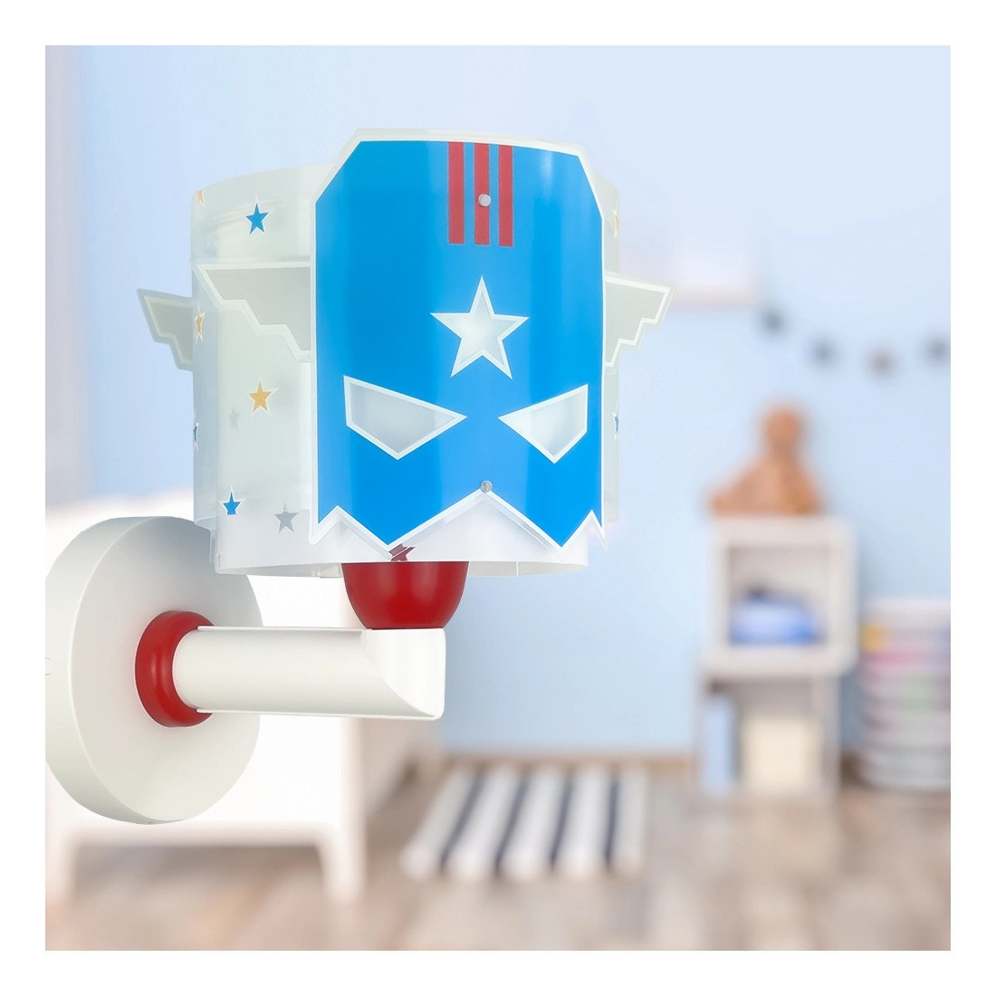 Εμπλουτίστε το παιδικό δωμάτιο με την απλίκα τοίχου Blue Hero, η οποία είναι εμπνευσμένη από τον ήρωα των κόμικς Superman. Η απλίκα τοίχου Blue Hero παρέχει γενικό ή συμπληρωματικό φωτισμό και είναι ιδανική για χρήση ως φωτιστικό ανάγνωσης πάνω από το κρεβάτι. Η Blue Hero απλίκα τοίχου είναι η ιδανική προσθήκη για να φέρει μια πινελιά περιπέτειας στο δωμάτιο του παιδιού σας, διεγείροντας τη φαντασία και το παιχνίδι. Αποτελεί μέρος της ευρύτερης συλλογής Blue Hero παιδικών φωτιστικών και είναι κατασκευασμένη στην Ευρώπη.