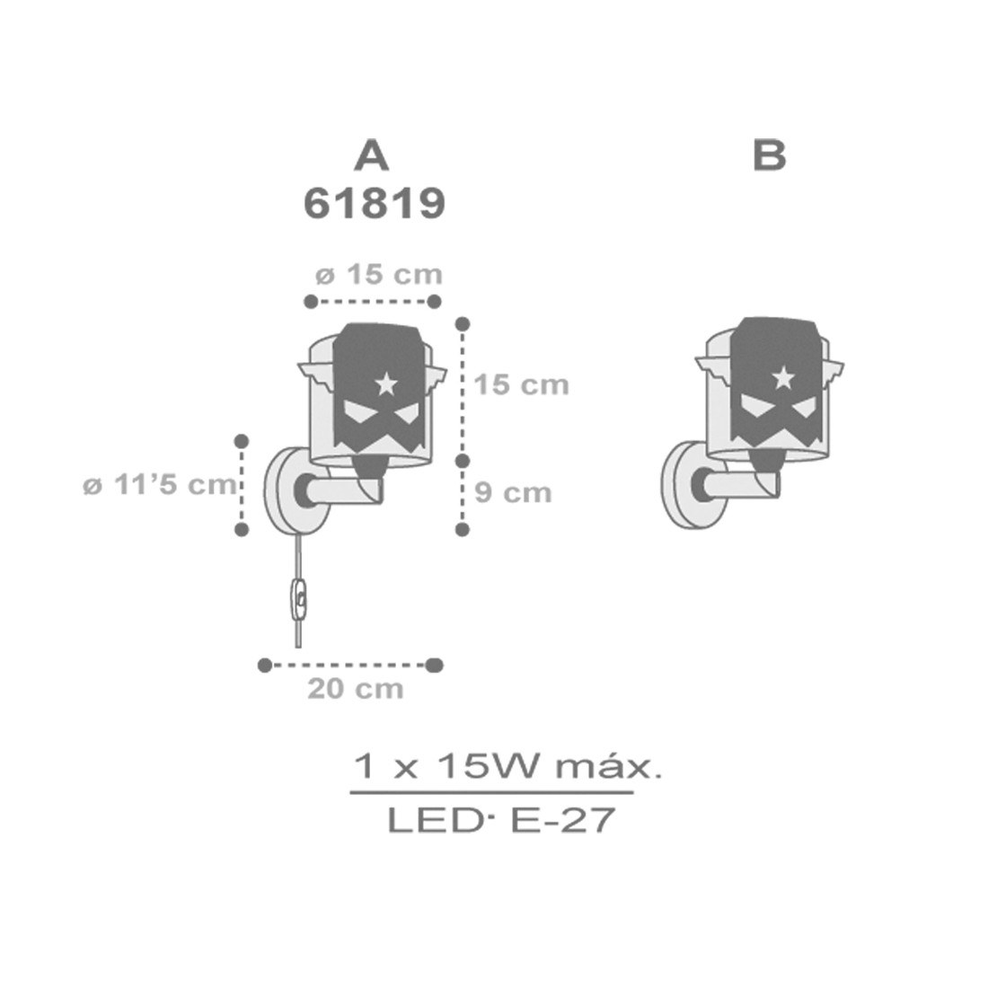 • Αριθμός λαμπτήρων: 1 (δε συμπεριλαμβάνεται)