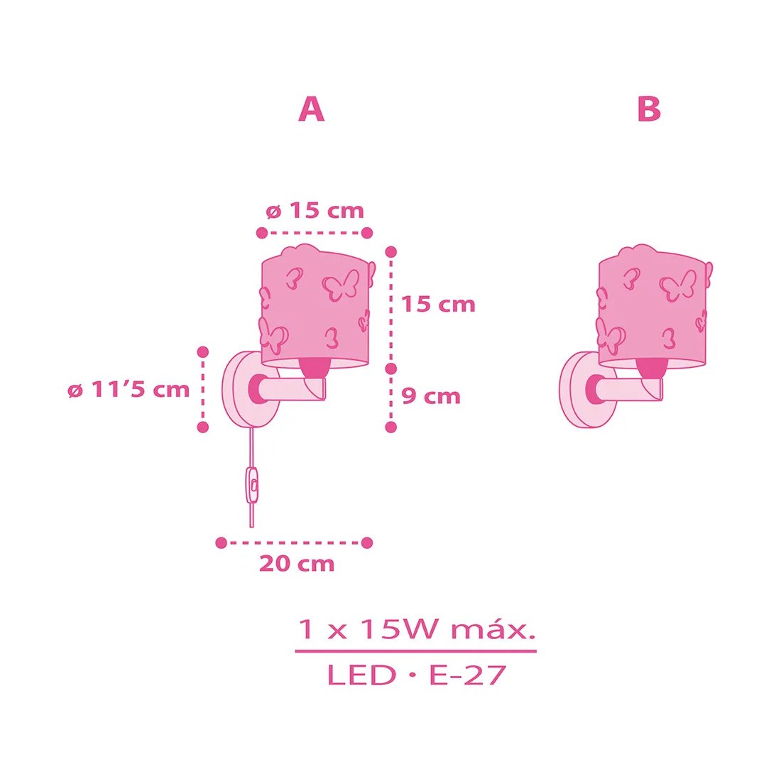 Παιδικό φωτιστικό απλίκα τοίχου, κατάλληλο για παιδιά και ιδανικά σχεδιασμένο για γενικό ή συμπληρωματικό φωτισμό. Φωτίζει και προσθέτει διασκεδαστικό χαρακτήρα και χαρούμενο άγγιγμα σε κάθε παιδικό δωμάτιο. Παρέχει ομοιόμορφο άπλετο φως δημιουργώντας περιβάλλον που ενθαρρύνει τα παιδιά να επιδοθούν σε ότι τους αρέσει περισσότερο στην διασκέδαση και την δημιουργικότητα! Το Butterfly απλίκα τοίχου συμπληρώνει τα υπόλοιπα παιδικά φωτιστικά της συλλογής και είναι κατασκευασμένο εξ ολοκλήρου στην Ευρώπη.