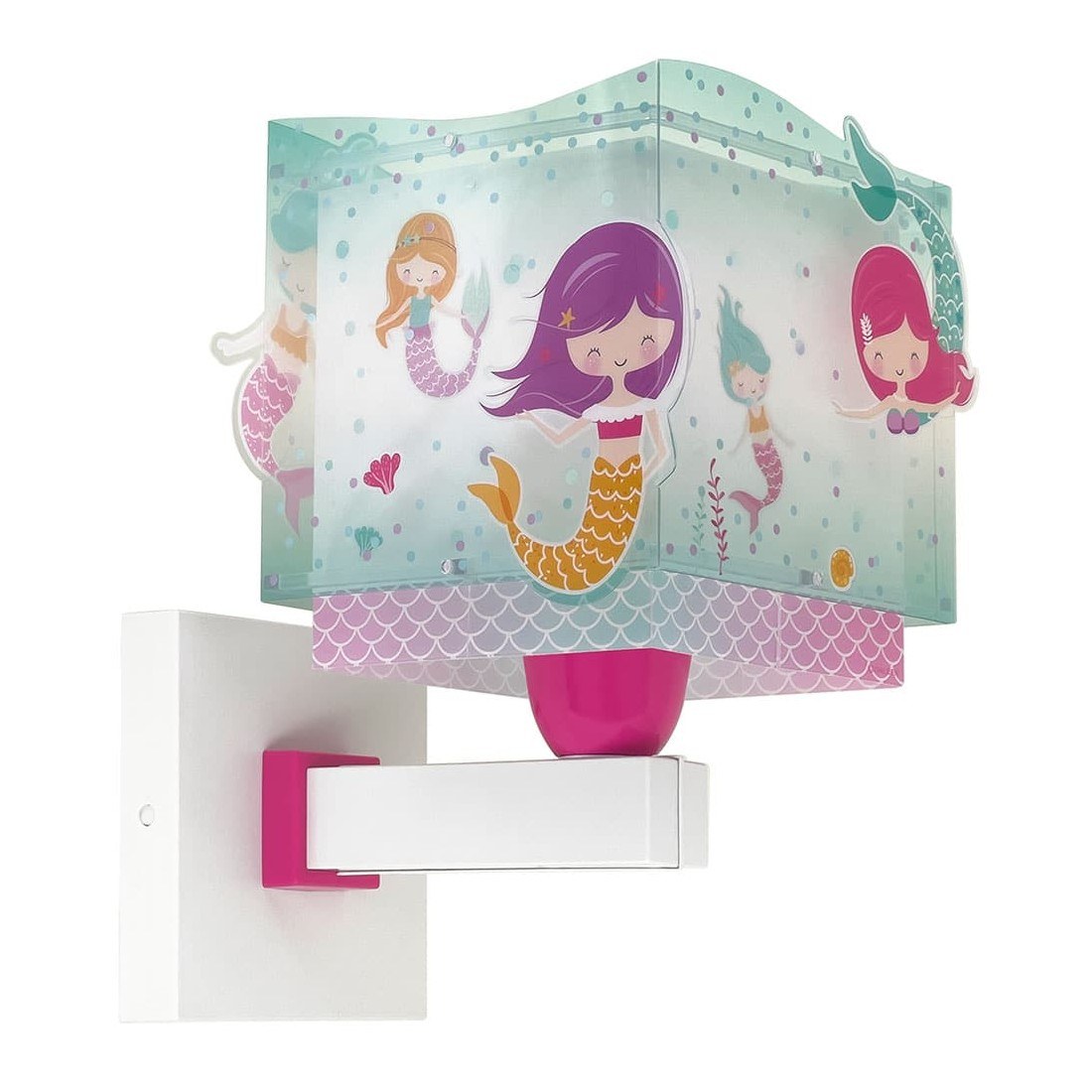 Παιδικό φωτιστικό απλίκα τοίχου με θέμα τις γοργόνες, ιδανικά σχεδιασμένο για γενικό ή συμπληρωματικό φωτισμό. Φωτίζει και προσθέτει διασκεδαστικό χαρακτήρα και χαρούμενο άγγιγμα σε κάθε παιδικό δωμάτιο. Τοποθετείται στον τοίχο και είναι κατάλληλο ακόμα και για διάβασμα πάνω από το προσκέφαλο του κρεβατιού. Παρέχει ομοιόμορφο φως δημιουργώντας περιβάλλον που ενθαρρύνει τα παιδιά να επιδοθούν σε ότι τους αρέσει περισσότερο, διασκεδάζοντας ή δημιουργώντας! Το Mermaids φωτιστικό απλίκα διπλού τοιχώματος συμπληρώνει τα υπόλοιπα παιδικά φωτιστικά της συλλογής και είναι κατασκευασμένο εξ ολοκλήρου στην Ευρώπη.