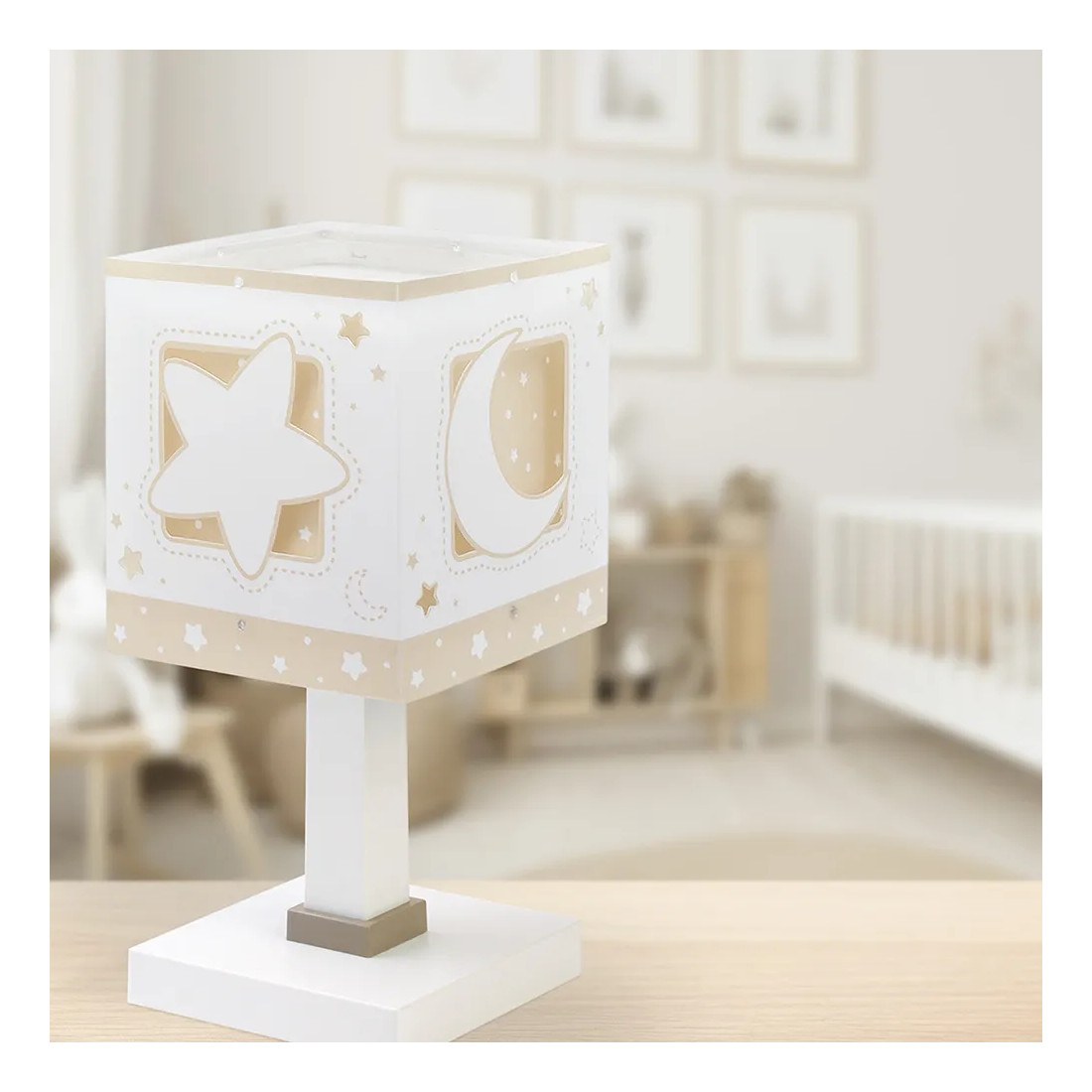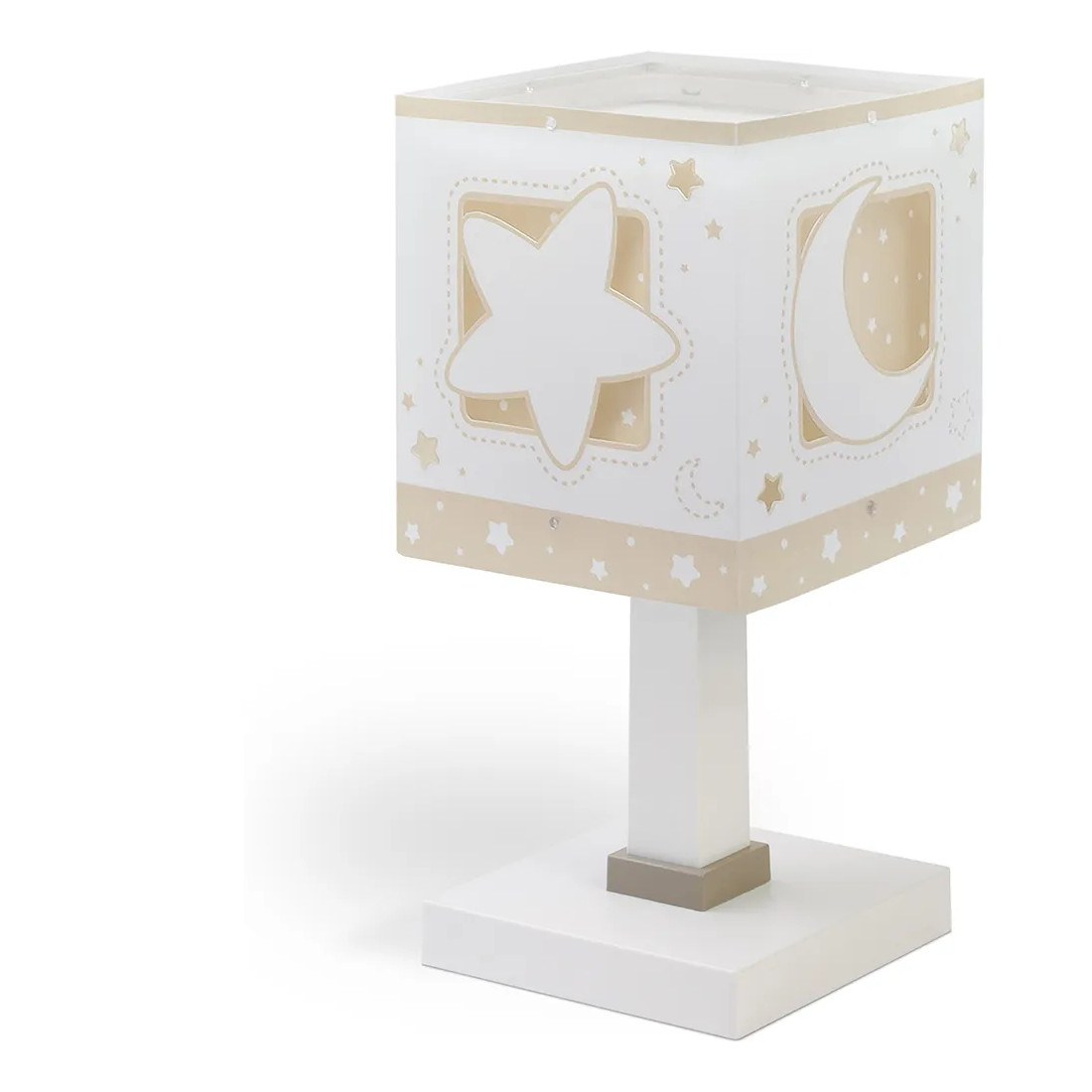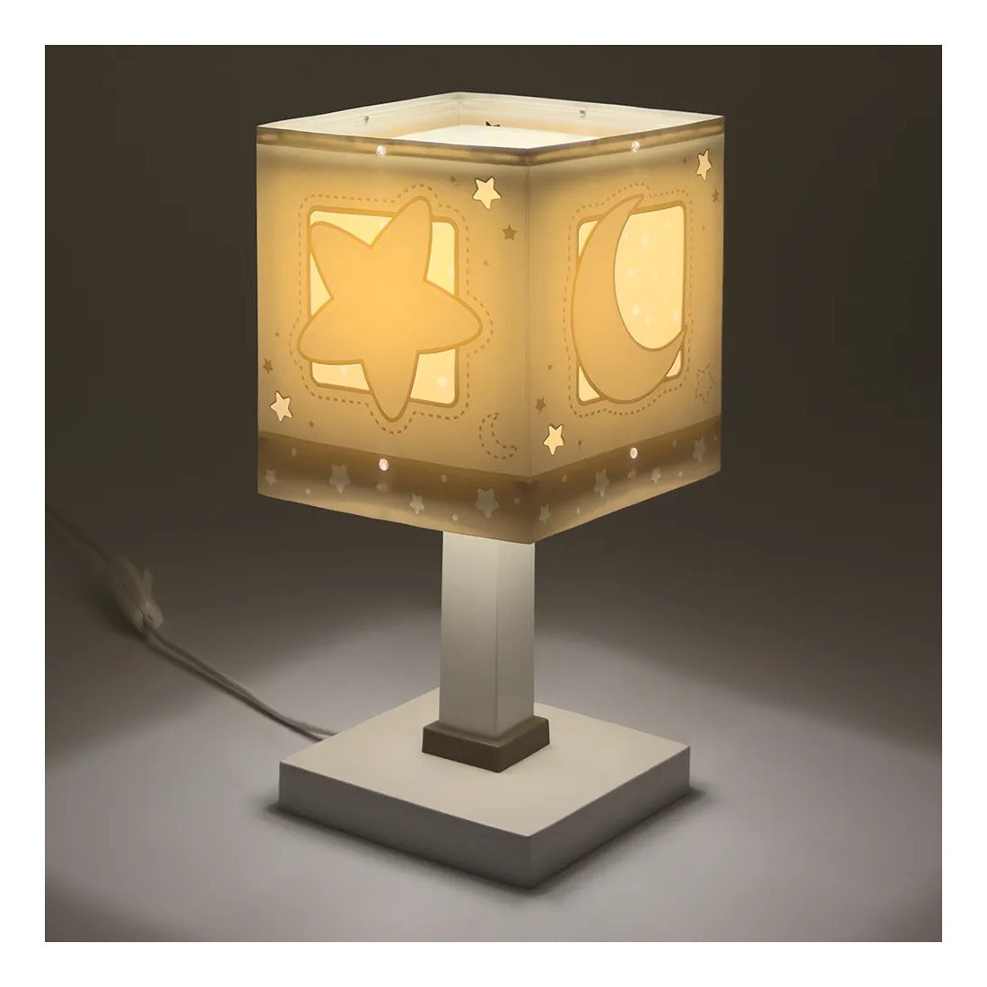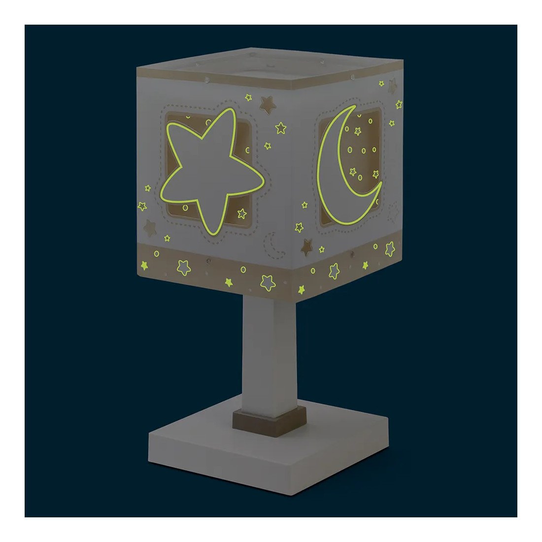 Κλασικής σχεδίασης παιδικό φωτιστικό κομοδίνου διπλού τοιχώματος. Προσθέτει διασκεδαστικό χαρακτήρα και χρώμα σε κάθε παιδικό δωμάτιο ακόμα και στο σκοτάδι με τα τυπωμένα στο εξωτερικό του τοίχωμα φωσφορίζοντα μέρη. Παρέχει ομοιόμορφο, συμπληρωματικό φωτισμό δημιουργώντας περιβάλλον που ενθαρρύνει τα παιδιά να επιδοθούν σε ότι τους αρέσει περισσότερο – διασκέδαση και δημιουργικότητα! Απόλυτα ασφαλές ώστε τα παιδιά να μπορούν να μελετήσουν, να παίξουν και να κοιμηθούν παρέα με τον αγαπημένο τους ήρωα. Ανθεκτικό στα χτυπήματα και τις πτώσεις. Απόλυτα συμβατό με τις ευρωπαϊκές προδιαγραφές ασφαλείας. Το MoonLight Beige κομοδίνου φωτιστικό συμπληρώνει τα υπόλοιπα παιδικά φωτιστικά της συλλογής.