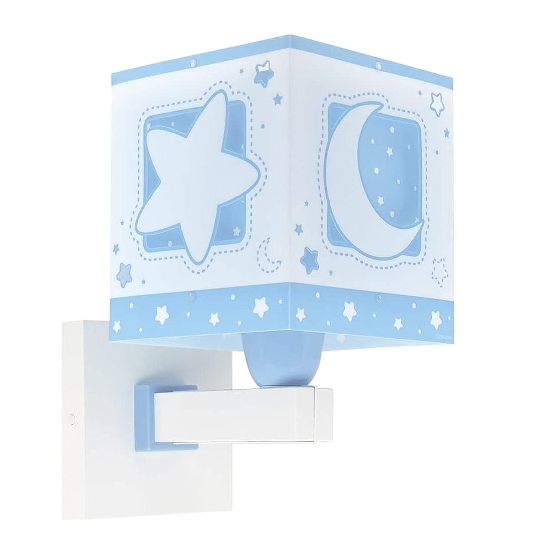 Παιδικό φωτιστικό, απλίκα τοίχου με θέμα από τον ουράνιο κόσμο των αστεριών και του φεγγαριού είναι ιδανικά σχεδιασμένη για γενικό ή συμπληρωματικό φωτισμό. Φωτίζει και προσθέτει διασκεδαστικό χαρακτήρα και χαρούμενο άγγιγμα σε κάθε παιδικό δωμάτιο ακόμα και στο σκοτάδι με τα εξωτερικά φωσφορίζοντα μέρη του.  Η Moonlight Blue απλίκα τοίχου τοποθετείται στον τοίχο και είναι κατάλληλη ακόμα και για διάβασμα πάνω από το προσκέφαλο του κρεβατιού.  Παρέχει ομοιόμορφο φως δημιουργώντας περιβάλλον που ενθαρρύνει τα παιδιά να επιδοθούν σε ότι τους αρέσει περισσότερο, διασκεδάζοντας ή δημιουργώντας!  Η Moonlight Blue απλίκα τοίχου είναι διπλού τοιχώματος και συμπληρώνει τα υπόλοιπα παιδικά φωτιστικά της συλλογής. Είναι κατασκευασμένη εξ ολοκλήρου στην Ευρώπη με πιστοποιητικά ασφαλείας.
