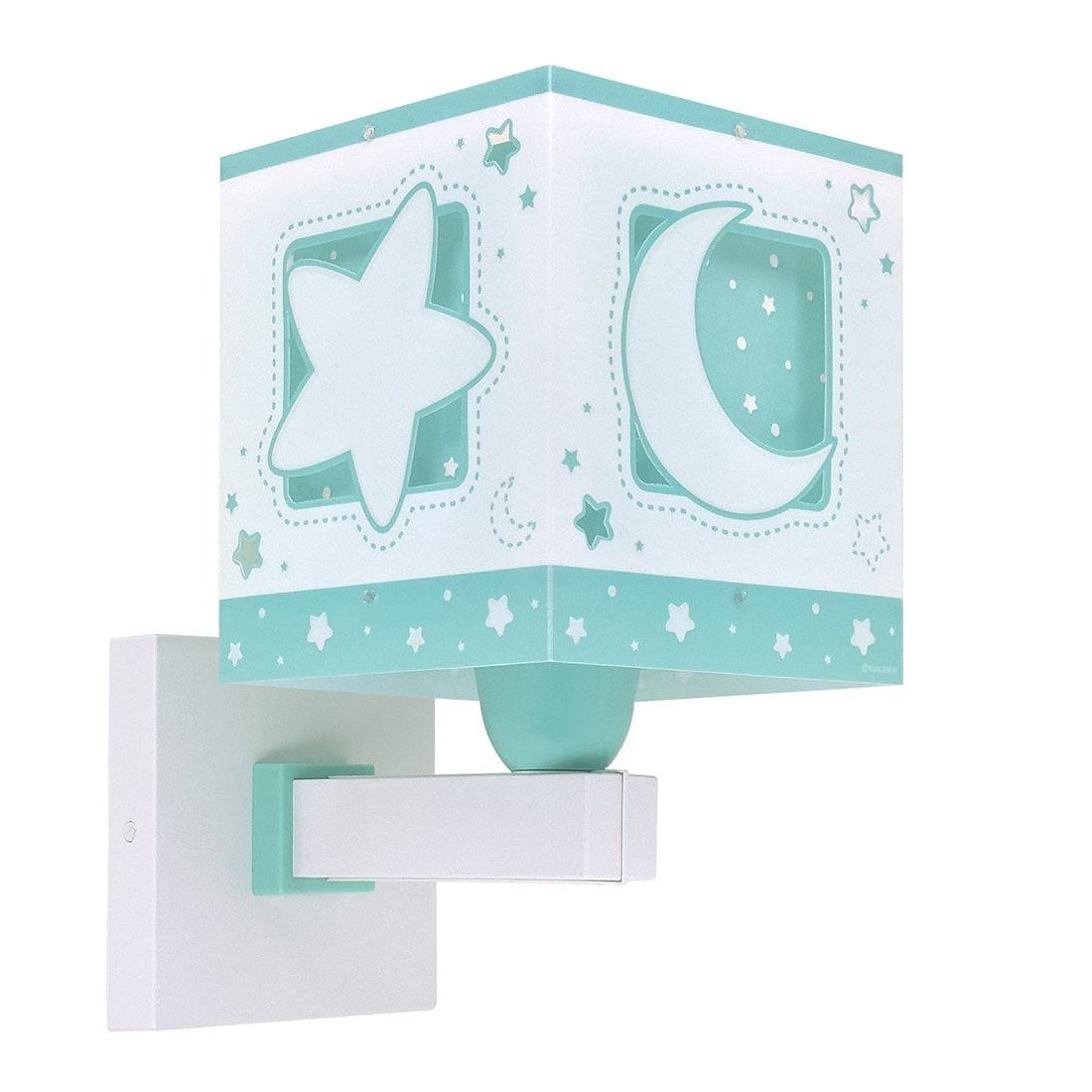 Η Moonlight Green απλίκα τοίχου με θέμα από τον ουράνιο κόσμο των αστεριών και του φεγγαριού είναι ιδανικά σχεδιασμένη για γενικό ή συμπληρωματικό φωτισμό. Φωτίζει και προσθέτει διασκεδαστικό χαρακτήρα και χαρούμενο άγγιγμα σε κάθε παιδικό δωμάτιο ακόμα και στο σκοτάδι με τα εξωτερικά φωσφορίζοντα μέρη του. Η Moonlight Green απλίκα τοίχου τοποθετείται στον τοίχο και είναι κατάλληλη ακόμα και για διάβασμα πάνω από το προσκέφαλο του κρεβατιού. Παρέχει ομοιόμορφο φως δημιουργώντας περιβάλλον που ενθαρρύνει τα παιδιά να επιδοθούν σε ότι τους αρέσει περισσότερο, διασκεδάζοντας ή δημιουργώντας! Η Moonlight Green απλίκα τοίχου είναι διπλού τοιχώματος και συμπληρώνει τα υπόλοιπα παιδικά φωτιστικά της συλλογής. Είναι κατασκευασμένη εξ ολοκλήρου στην Ευρώπη με πιστοποιητικά ασφαλείας.