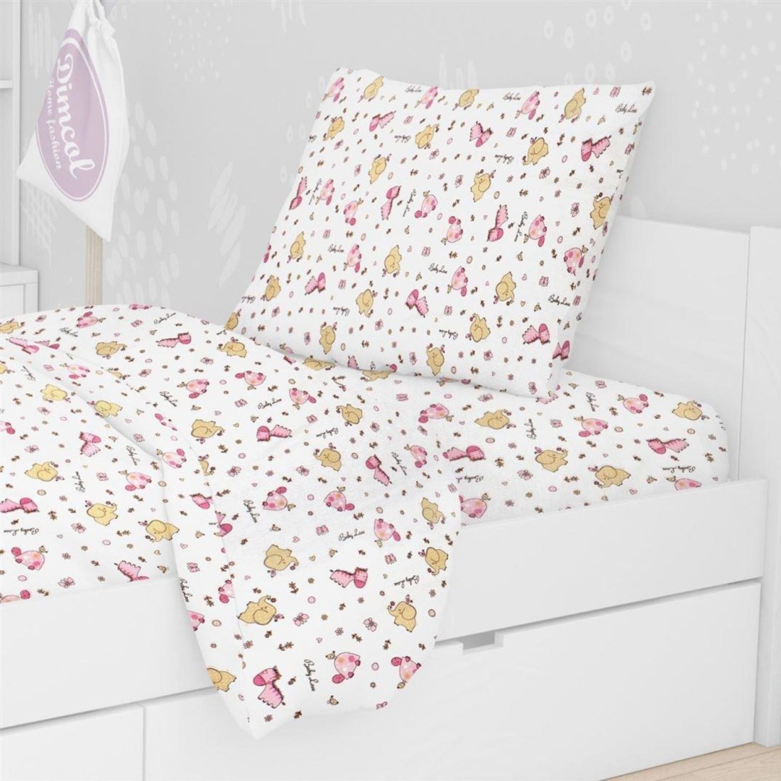 Παιδική Μαξιλαροθήκη Φανελένια Dimcol Elephant 072 50X70 White-Pink