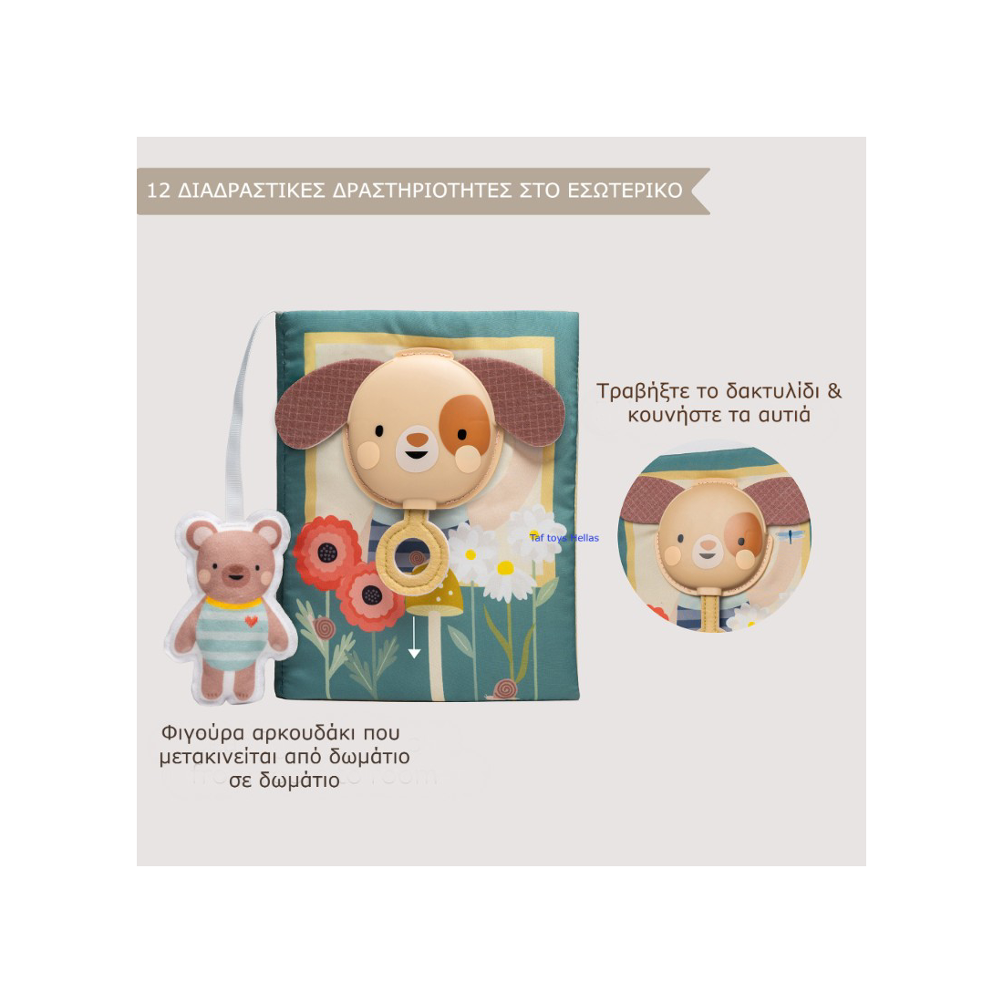 Πρόκειται για ένα activity board με 12 διαδραστικές λειτουργίες, που συνδυάζει υφές, ήχους και οπτικά ερεθίσματα, ενθαρρύνοντας την εξερεύνηση και το ανεξάρτητο παιχνίδι. :contentReference[oaicite:0]{index=0}