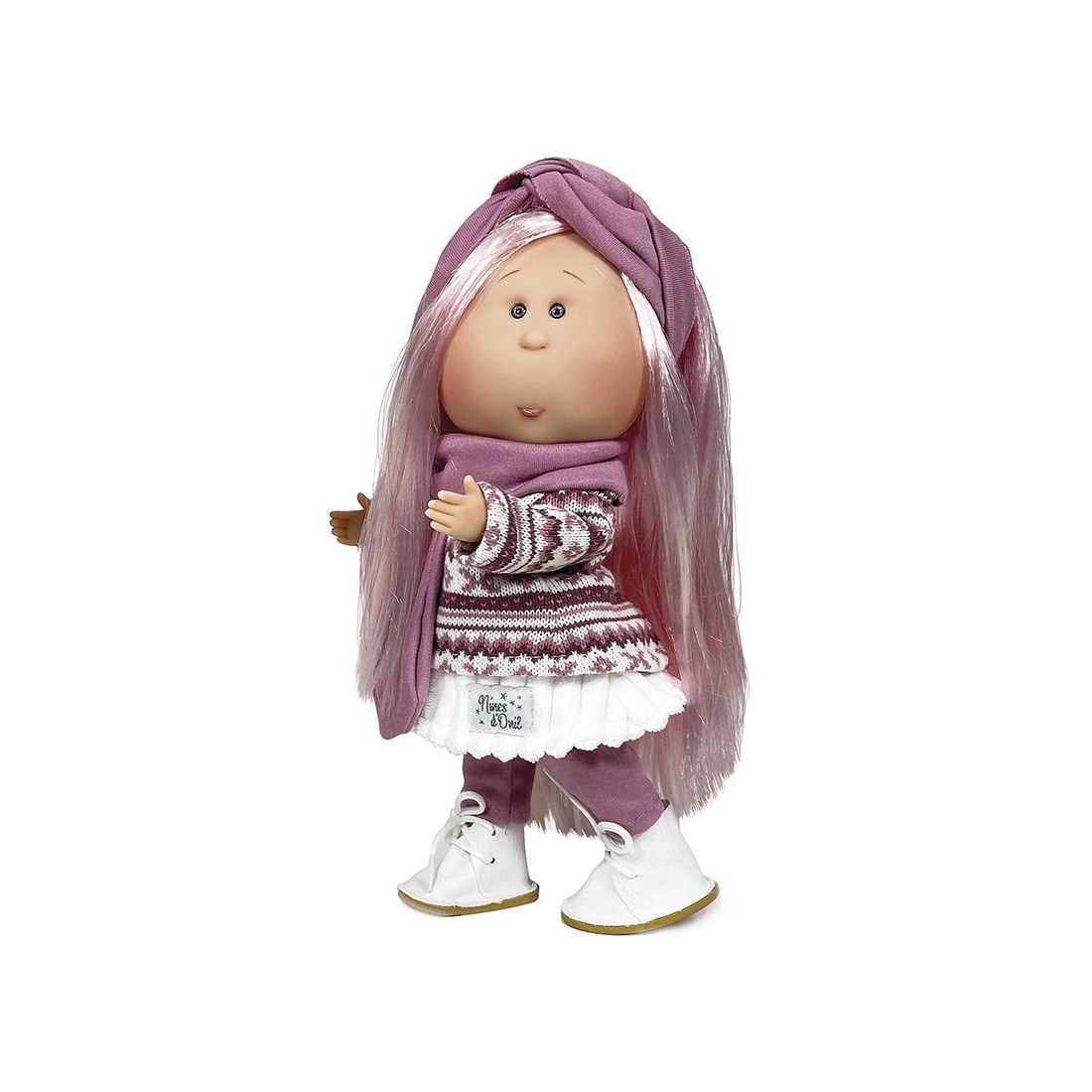 Κούκλα Mia Με Ροζ Μαλλιά Κασκόλ Και Κορδέλα Nines D'Onil Σε Θήκη NDO-1113