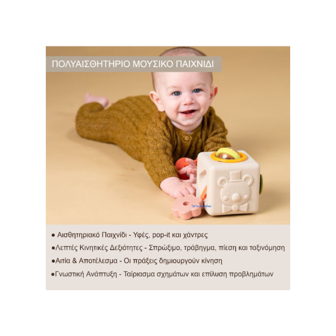 Ένα πρακτικό και διασκεδαστικό παιχνίδι που συνδυάζει κίνηση και αισθητηριακά ερεθίσματα, ιδανικό για τις καθημερινές δραστηριότητες του μωρού.
