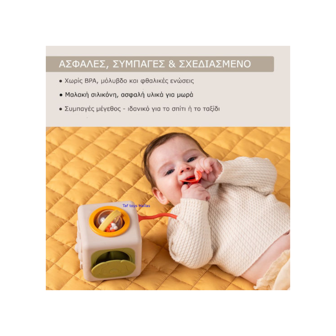 Ένα διαδραστικό κρεμαστό παιχνίδι Taf Toys με περιστροφή, ιδανικό για μωρά από 6+ μηνών, που προσφέρει διασκέδαση και ανάπτυξη μέσα από το παιχνίδι.