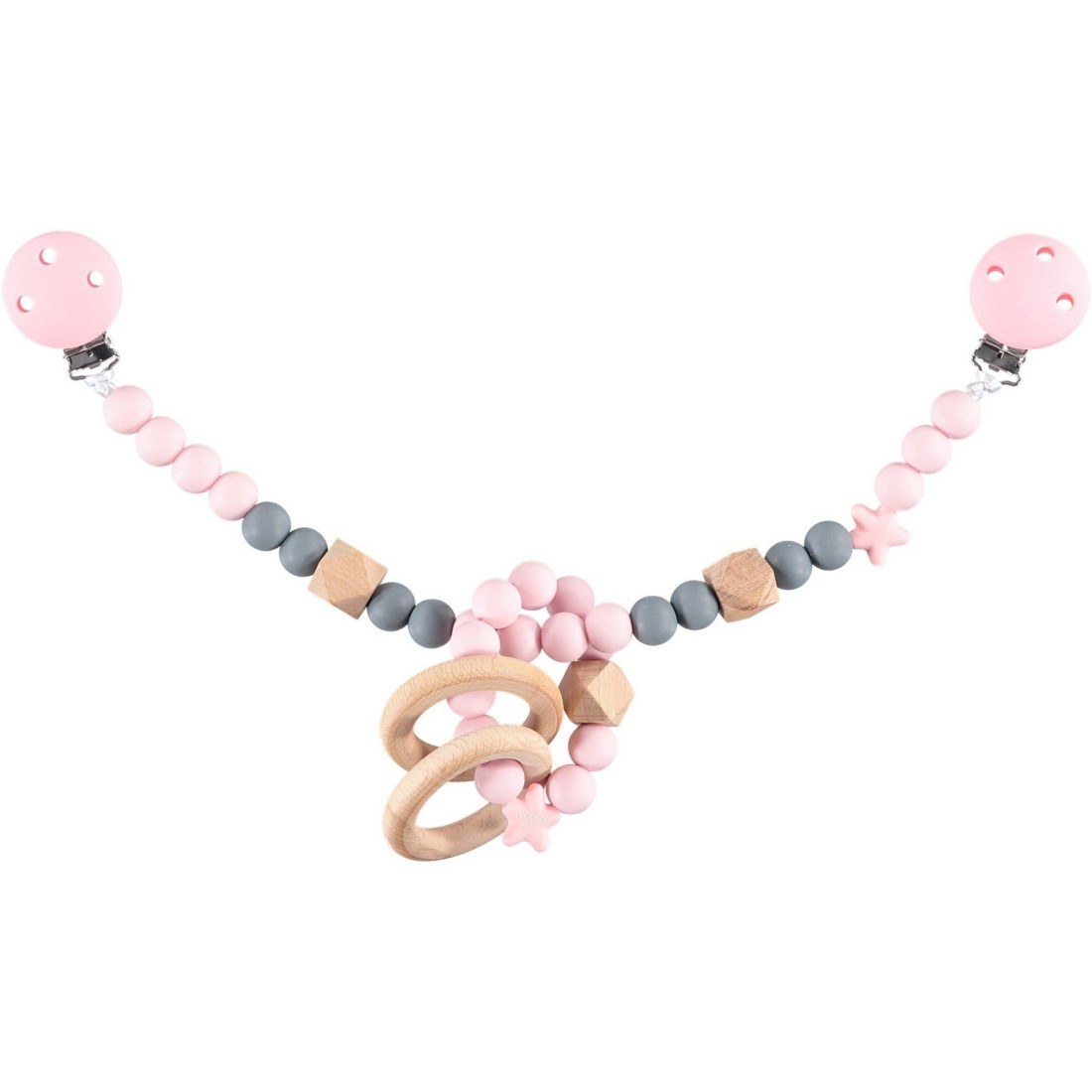 Παιχνίδι δραστηριότητας της εταιρείας Nibbling. Κρατάει απασχολημένο το μωρό σας στην καλαθούνα, την κούνια, το καρότσι ή το κάθισμα του αυτοκινήτου. Τα διαφορετικά σχήματα και χρώματα διεγείρουν οπτικά το μωρό, το οποίο αναπτύσσει τακτική αντίληψη παίζοντας. Το ειδικά σχεδιασμένο παιχνίδι στο κέντρο μπορεί να αφαιρεθεί και να χρησιμοποιηθεί ξεχωριστά ως κουδουνίστρα-μασητικό. Είναι κατασκευασμένο από σιλικόνη ασφαλή για χρήση με τα τρόφιμα, χωρίς BPA και από ακατέργαστο φυσικό ξύλο. Τα προϊόντα της εταιρείας Nibbling είναι δοκιμασμένα και πληρούν ευρωπαϊκά και αμερικανικά πρότυπα ενώ είναι εγκεκριμένα από παιδίατρους.