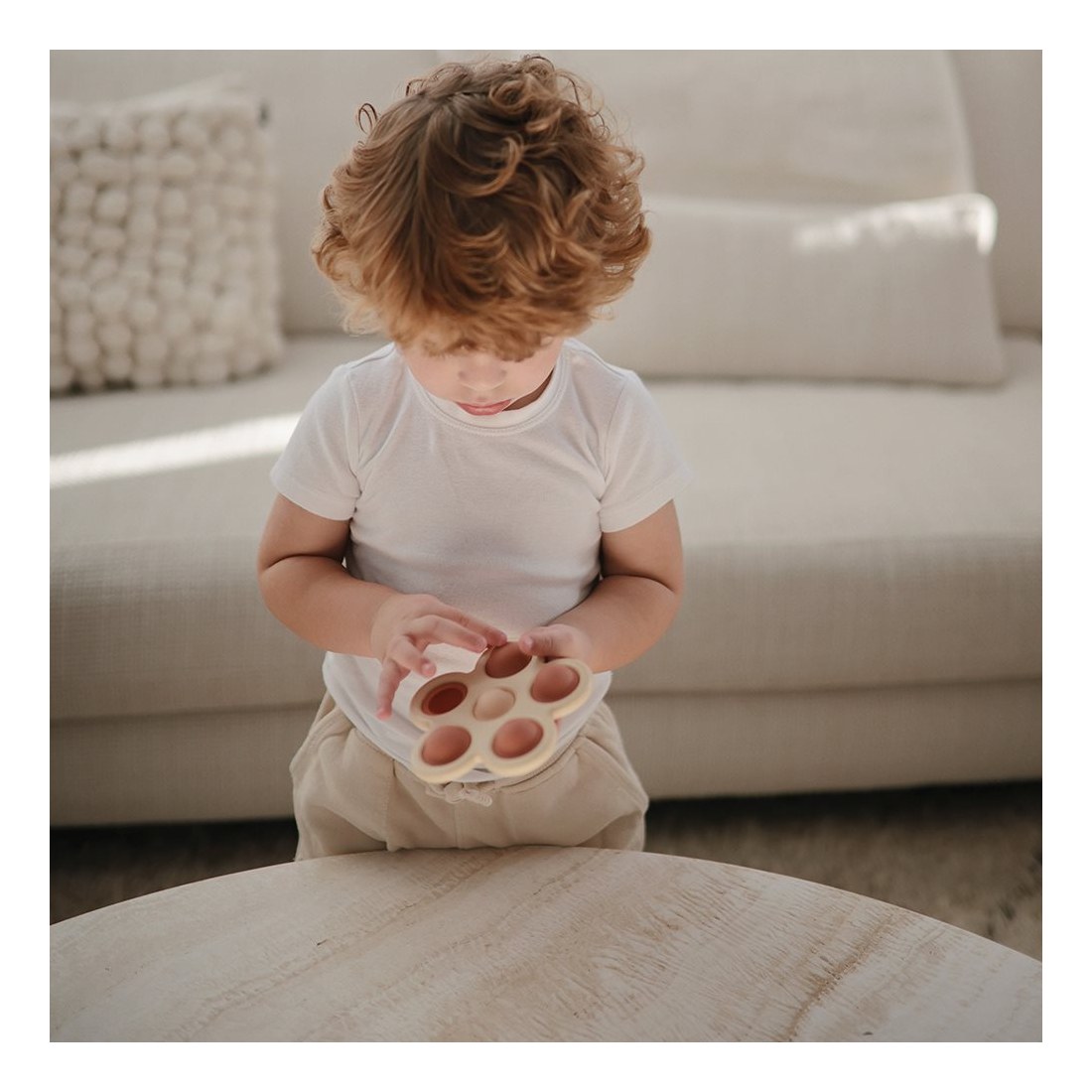 Ένα όμορφο λουλούδι σιλικόνης που εμπνέεται από τη φύση και είναι σχεδιασμένο για να παίζουν μαζί του μικρά χεράκια. Το παιχνίδι προάγει τις λεπτές κινητικές δεξιότητες και ενθαρρύνει την αισθητηριακή εξερεύνηση με φυσαλίδες στα πέταλά του που μπορούν να πιεστούν και να σκάσουν. Υλικό: 100% σιλικόνη κατάλληλη για τρόφιμα και πλαστικό ABS Κατάλληλη ηλικία: 10+ μηνών Διαστάσεις: 11,5 x 11,5 cm. Καθαρίστε το με ζεστό, σαπουνόνερο και αφήστε το να στεγνώσει στον αέρα.