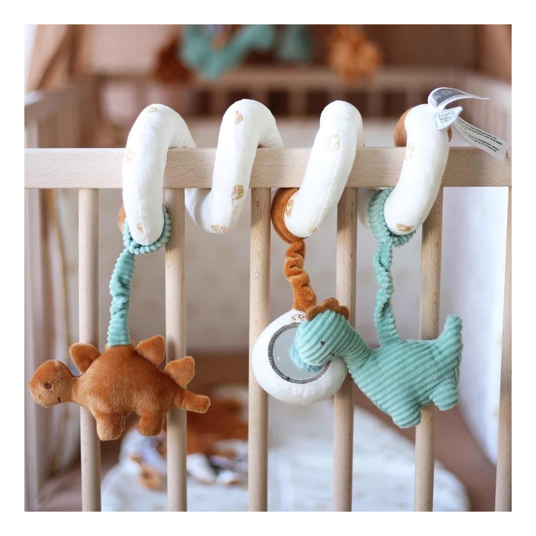 Ένα διακοσμητικό σπιράλ δραστηριοτήτων, με μία κουδουνίστρα, ένα καθρεπτάκι και 2 μικρά λούτρινα με τα οποία μπορεί να παίξει το μωρό σας. Εφαρμόζεται εύκολα σε διάφορα σημεία, όπως ένα καρότσι, μια κούνια.