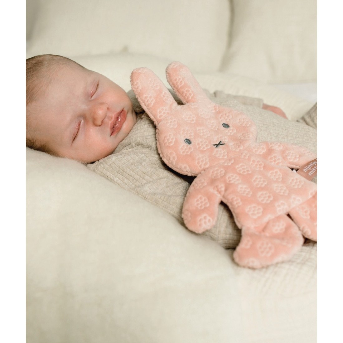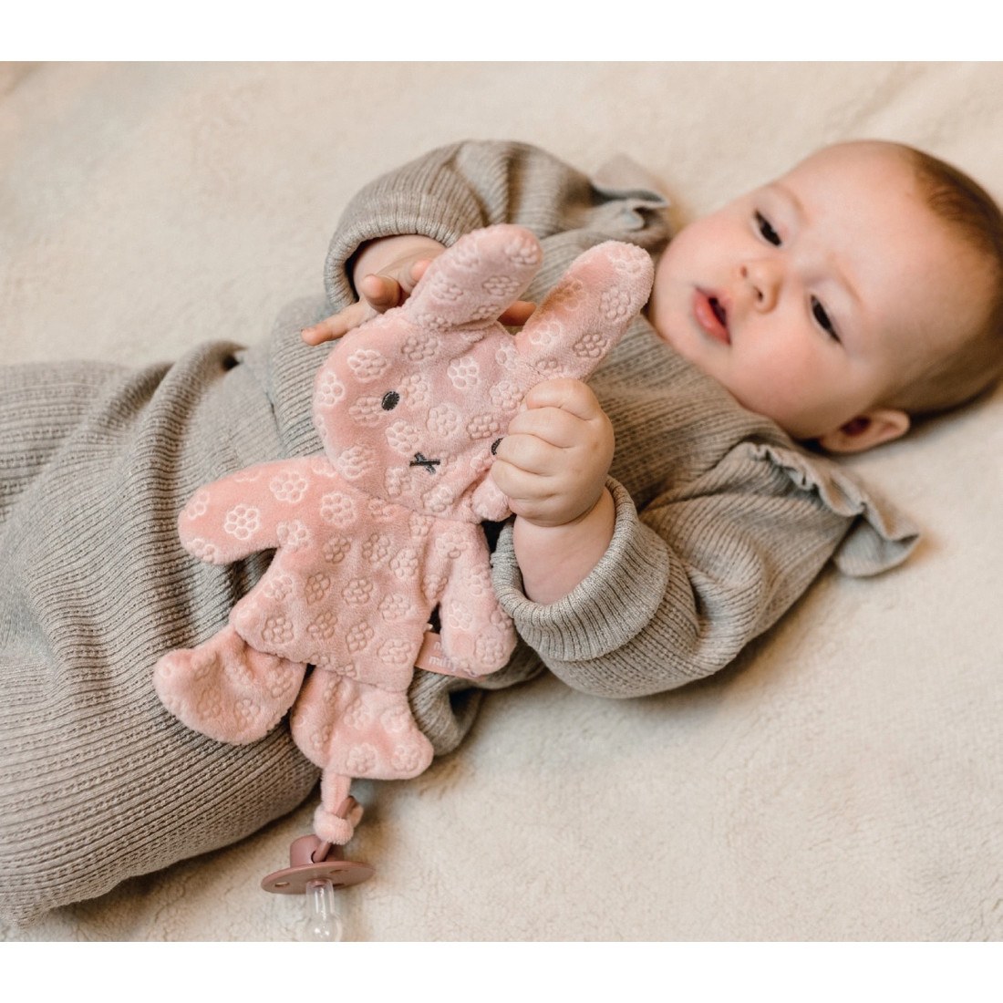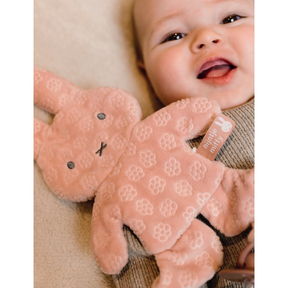 Ένα υπέροχα μαλακό βελουτέ πανάκι παρηγοριάς από τη νέα σειρά της Miffy, Miffy Flowers. Είναι εξαιρετικό για τρυφερές αγκαλιές και έχει ένα διακοσμητικό λουράκι με το οποίο τα μικρά παιδιά μπορούν να παίξουν, στο οποίο μπορείτε και να κρεμάσετε και τις πιπίλες σας.