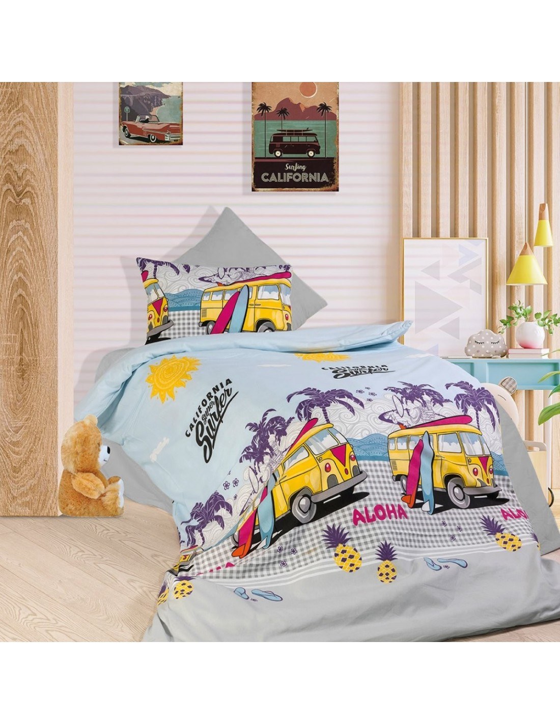 Παπλωματοθήκη διαστάσεων 220x240 cm με φερμουάρ για υπέρδιπλο πάπλωμα. -Κατασκευασμένη στην πάνω πλευρά από ύφασμα Εμπριμέ σύνθεσης βαμβάκι 70% - Πολυέστερ 30%, 144 Κλωστών, σε χαρούμενα και απαλά χρώματα, με μοντέρνες και σύγχρονες παραστάσεις και στη κάτω πλευρά από μονόχρωμο γκρι κομποζέ ύφασμα μελανζέ της ίδιας σύνθεσης για προστασία στο πάπλωμα σας και χρώματα στο κρεβάτι σας.