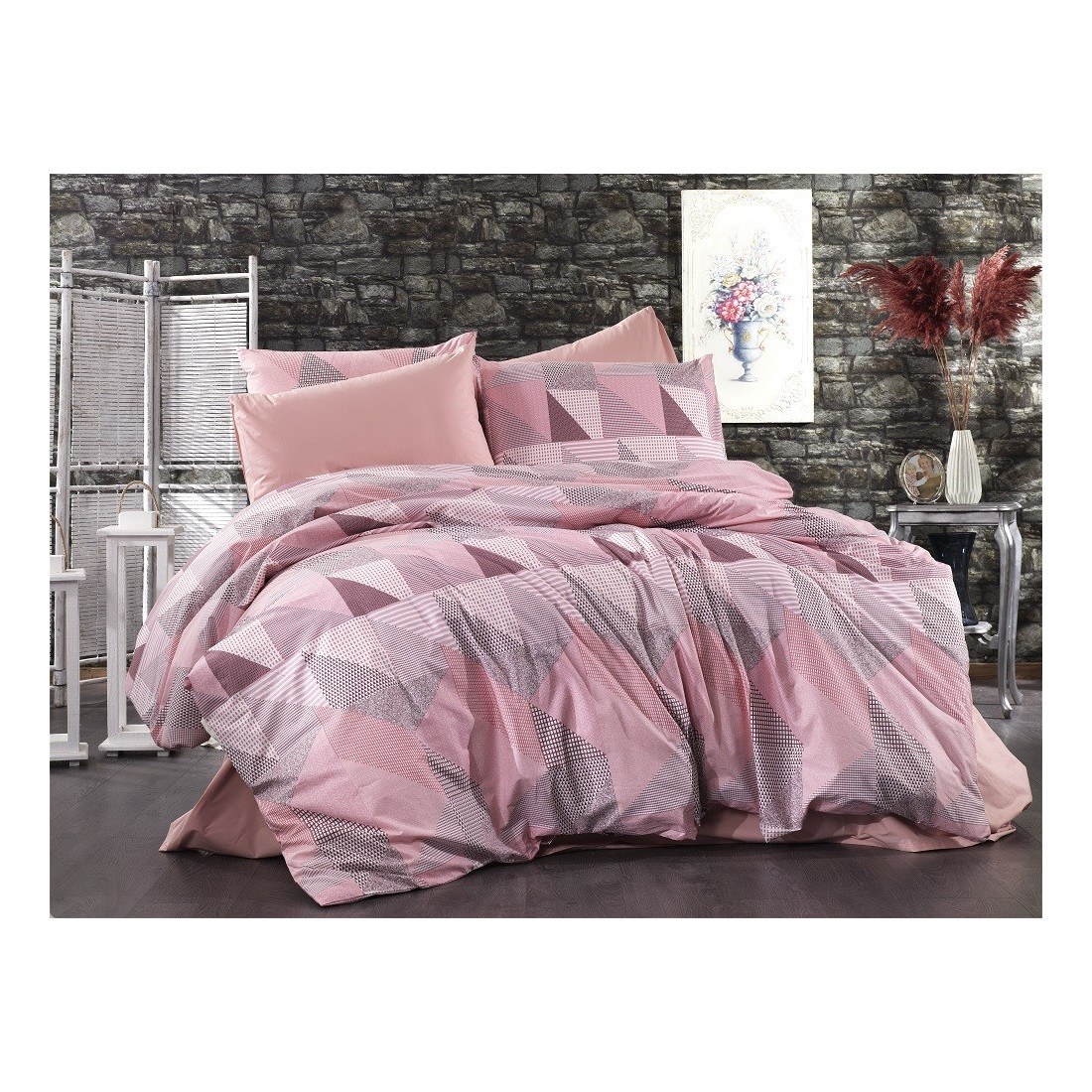 Παπλωματοθήκη Υπέρδιπλη Dimcol Geometrical 331 Pink-Salmon, εμπριμέ με χαρούμενα χρώματα.