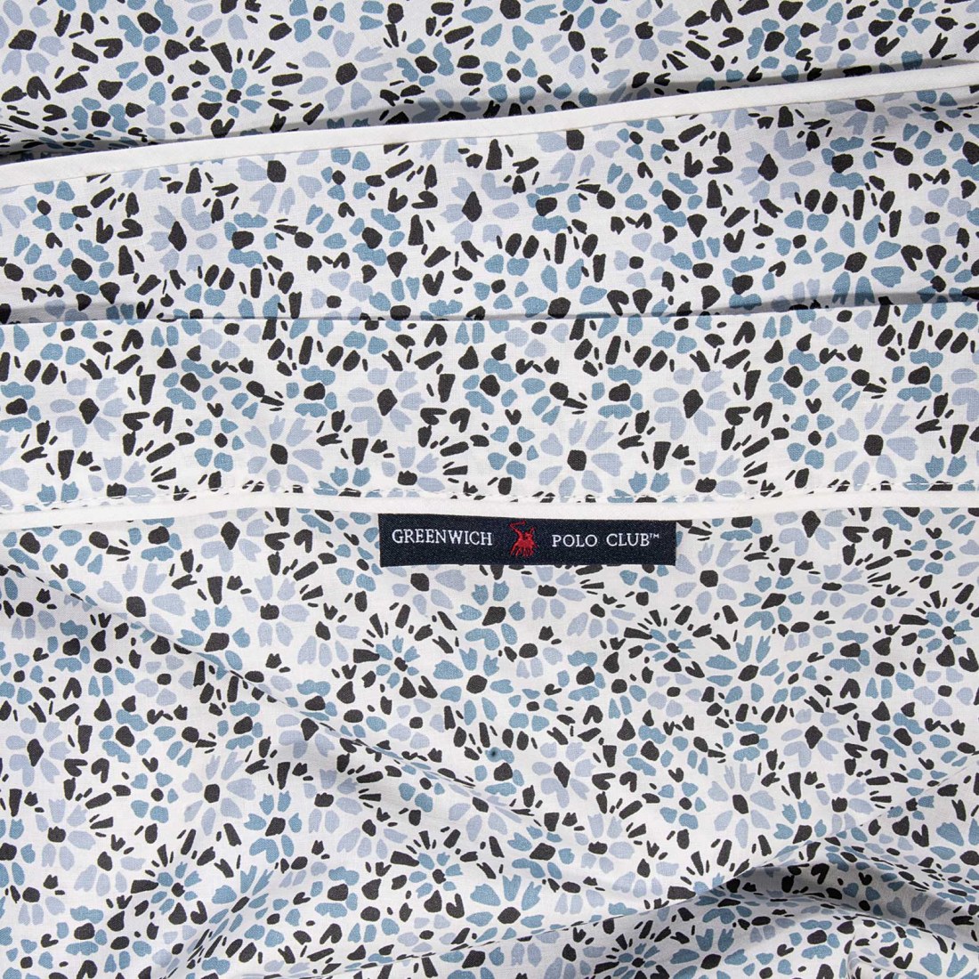 Εμπριμέ σετ παπλωματοθήκη Greenwich Polo Club με περιμμετρικό μονόχρωμο ρέλι της σειράς Εssential. Το ύφασμα είναι από υποαλλεργικό 100% βαμβάκι. με πυκνότητα ύφανσης 160TC και με ειδική επεξεργασία για εύκολο σιδέρωμα. Το σετ αποτελείται από μία παπλωματοθήκη διαστάσεων 220Χ240εκ και δύο μαξιλαροθήκες 50Χ70εκ. Αυτό που χαρακτηρίζει την συλλογή είναι τα ιδιαίτερα σχέδια και οι χαρακτηριστικές αποχρώσεις. Επιλέξτε Greenwich Polo Club για να απολαύσετε ποιότητα. στυλ και πολυτέλεια.-Πλύσιμο στους 40°C. Όχι χρήση χλωρίου ή λευκαντικού. Σιδέρωμα σε μέτρια θερμοκρασία. Όχι στεγνό καθάρισμα.