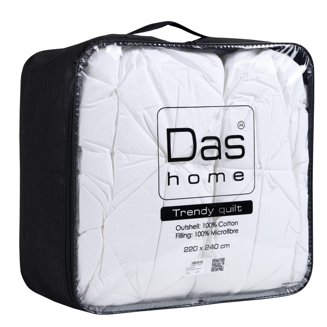 Τρισδιάστατο πάπλωμα. από ύφασμα 100% υποαλλεργικό βαμβάκι. Η γέμιση του είναι από 100% supersoft microfiber. Είναι ιδιαίτερα ζεστό. απαλό. ανθεκτικό στη χρήση. 800gr/m2 και με απόδοση θερμότητας 11.5 Τog. Διατίθεται σε διάσταση 220x240εκ. Das home...makes your house a home!-Πλύσιμο στους 40°C. Όχι σιδέρωμα. Όχι χρήση χλωρίου ή λευκαντικού. Στεγνό καθάρισμα.