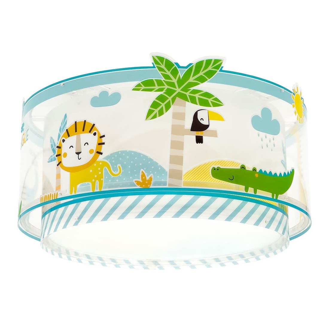 Παιδικό φωτιστικό οροφής τύπου πλαφονιέρα κατάλληλο για γενικό φωτισμό και όλες τις δραστηριότητες των παιδιών με θέμα τα ζώα της ζούγκλας. Τοποθετείται εύκολα και γρήγορα και είναι εφοδιασμένο με δύο θέσεις λαμπτήρων LED για πραγματικά άπλετο φως στο δωμάτιο. Παρέχεται διαχυτής φωτός για τις μικρότερες ηλικίες που προσφέρει ομοιόμορφο φωτισμό αλλά και προστασία. Κατασκευασμένο εξ ολοκλήρου στην Ευρώπη το My Little Jungle πλαφονιέρα οροφής, συμπληρώνει τα υπόλοιπα παιδικά φωτιστικά της συλλογής κομοδίνου, απλίκα ή νυκτός.