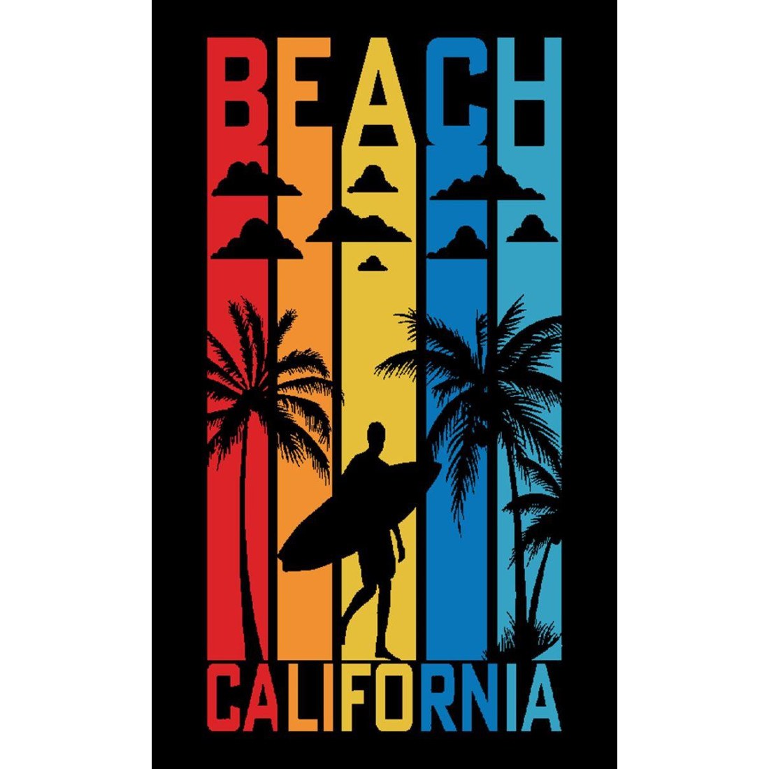 Βελουτέ πετσέτα θαλάσσης. διαστάσεων 87X165 cm. με ζακάρ σχέδιο διπλής όψεως που απεικονίζει έναν σέρφερ. σε μαύρο χρώμα με πολύχρωμες λεπτομέρειες. Κατασκευασμένη από 100% αιγυπτιακό βαμβάκι. υψηλής απαλότητας και απορροφητικότας. βάρους 420 gr/m². Συσκευασία Polybag.
