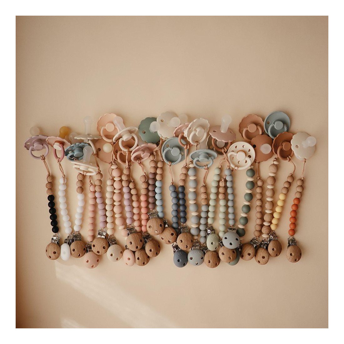 Τα κλιπ για πιπίλες αποτρέπουν την απώλεια ή την πτώση της πιπίλας του μωρού σας και το βοηθάει να την βρίσκει εύκολα όταν τη χρειάζεται. Μήκος: ~21 cm Οι διακοσμητικές χάντρες της είναι κατασκευασμένες από 100% σιλικόνη υψηλής ποιότητας, κατάλληλη για χρήση σε τρόφιμα και είναι κατάλληλες και για να της μασήσει το μωρό σας κατά τη φάση της οδοντοφυΐας. Πρότυπο ασφαλείας: EN12586 Πλύνετε στο χέρι με ήπιο σαπούνι και νερό. Ελέγξτε ολόκληρο το κλιπ για πιπίλα πριν από κάθε χρήση και πετάξτε το με το πρώτο σημάδι ζημιάς. Απαιτείται επίβλεψη από ενήλικα. Μην το χρησιμοποιείτε όταν το μωρό βρίσκεται σε κούνια, κρεβάτι ή παρκοκρέβατο χωρίς επίβλεψη. Μην το συνδέετε με κορδόνια, κορδέλες, δαντέλες ή χαλαρά μέρη ρούχων, καθώς υπάρχει κίνδυνος πνιγμού Συνιστούμε να συνδέετε το κλιπ της πιπίλας μόνο πάνω σε ρούχα. Μην επιμηκύνετε ποτέ το κλιπ της πιπίλας. Μην τοποθετείτε το κλιπ της πιπίλας σε οποιοδήποτε είδος αποστειρωτή.